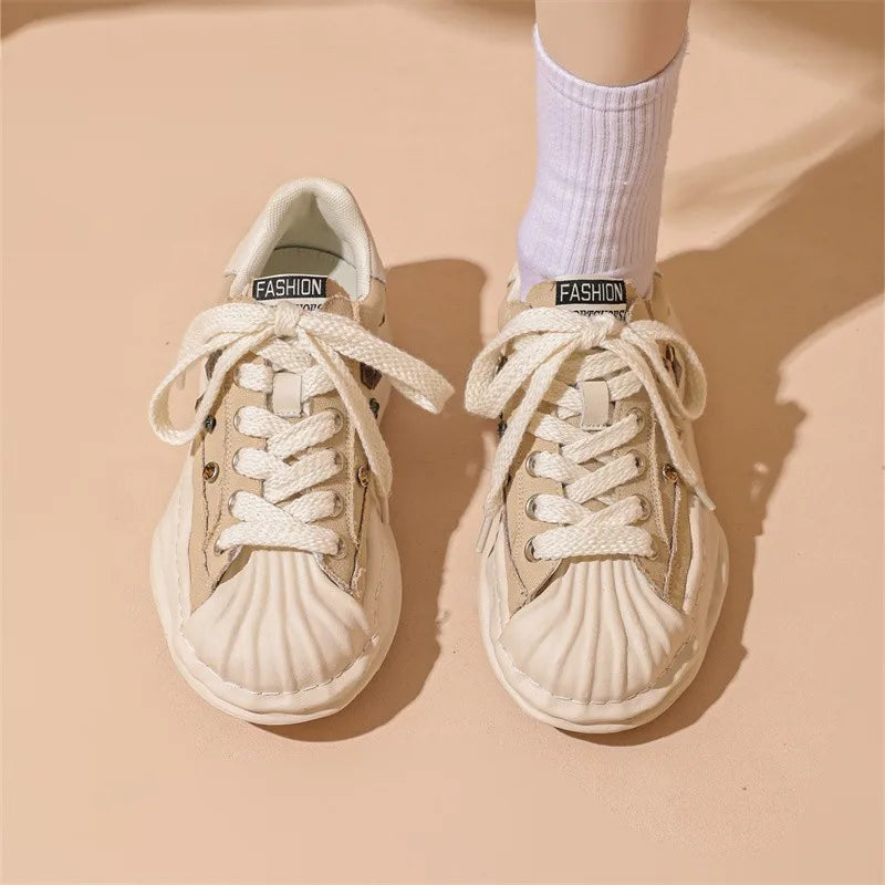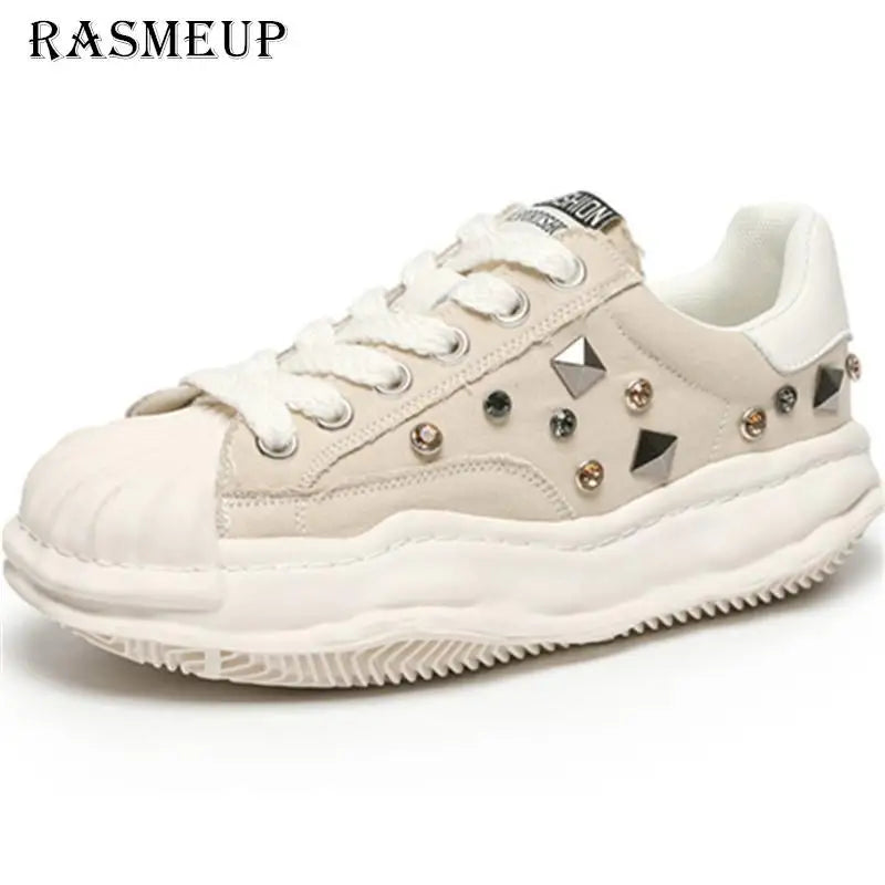 The Rhinestone Luxe Radiance Shell Sneakers exude glamour with their dazzling rhinestone embellishments and sleek shell design. making them the perfect statement piece for elevating any outfit with a touch of sparkle.
