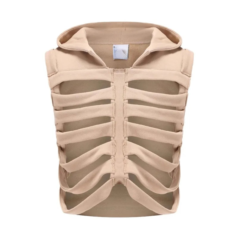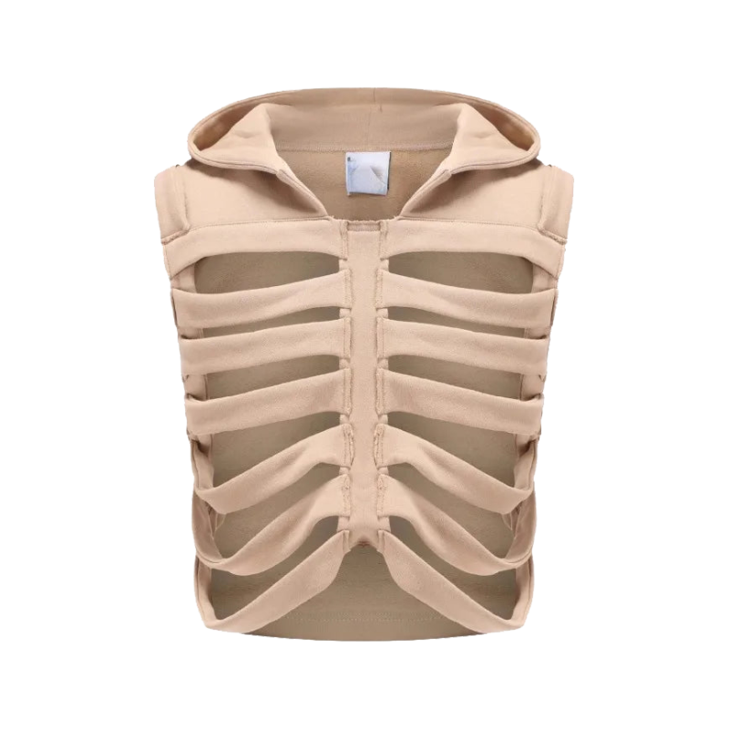 The Rib Cage Skeleton Vest adds a bold. edgy touch to any outfit. Featuring a skeleton rib cage design. this vest merges gothic style with streetwear. making it a standout piece for those who want to make a striking statement.
