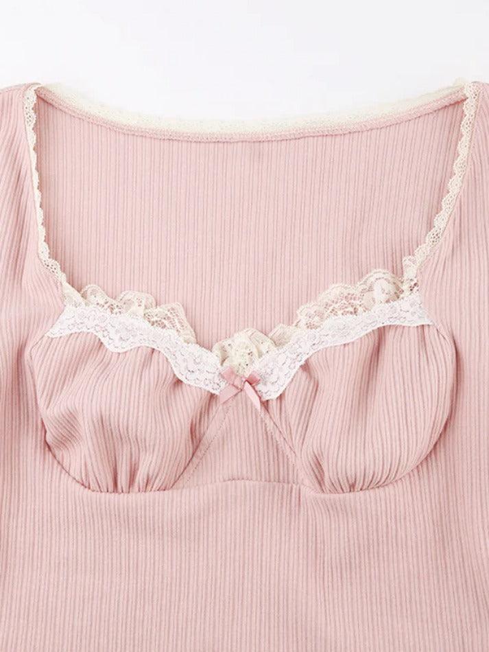 Delicate Details: The ribbed design and lace trim splice add a touch of femininity and sophistication. making the top more appealing and visually interesting.