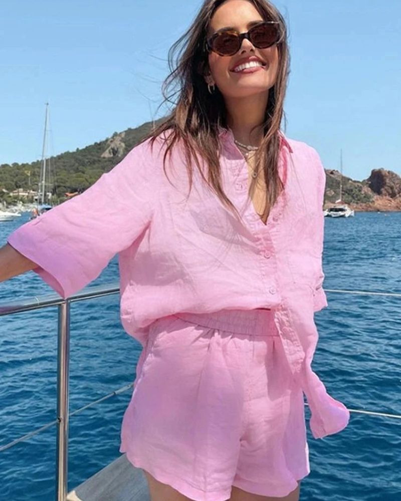 With the summery pink color and the breathable material. this set brings a wonderfully sunny atmosphere to any occasion. The casual. yet stylish design makes it perfect for any occasion.