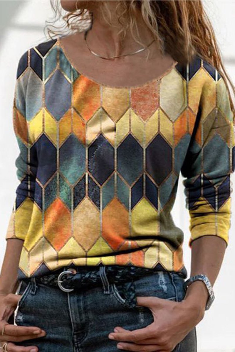 Round Neck Multicolor Long Sleeve T-Shirt