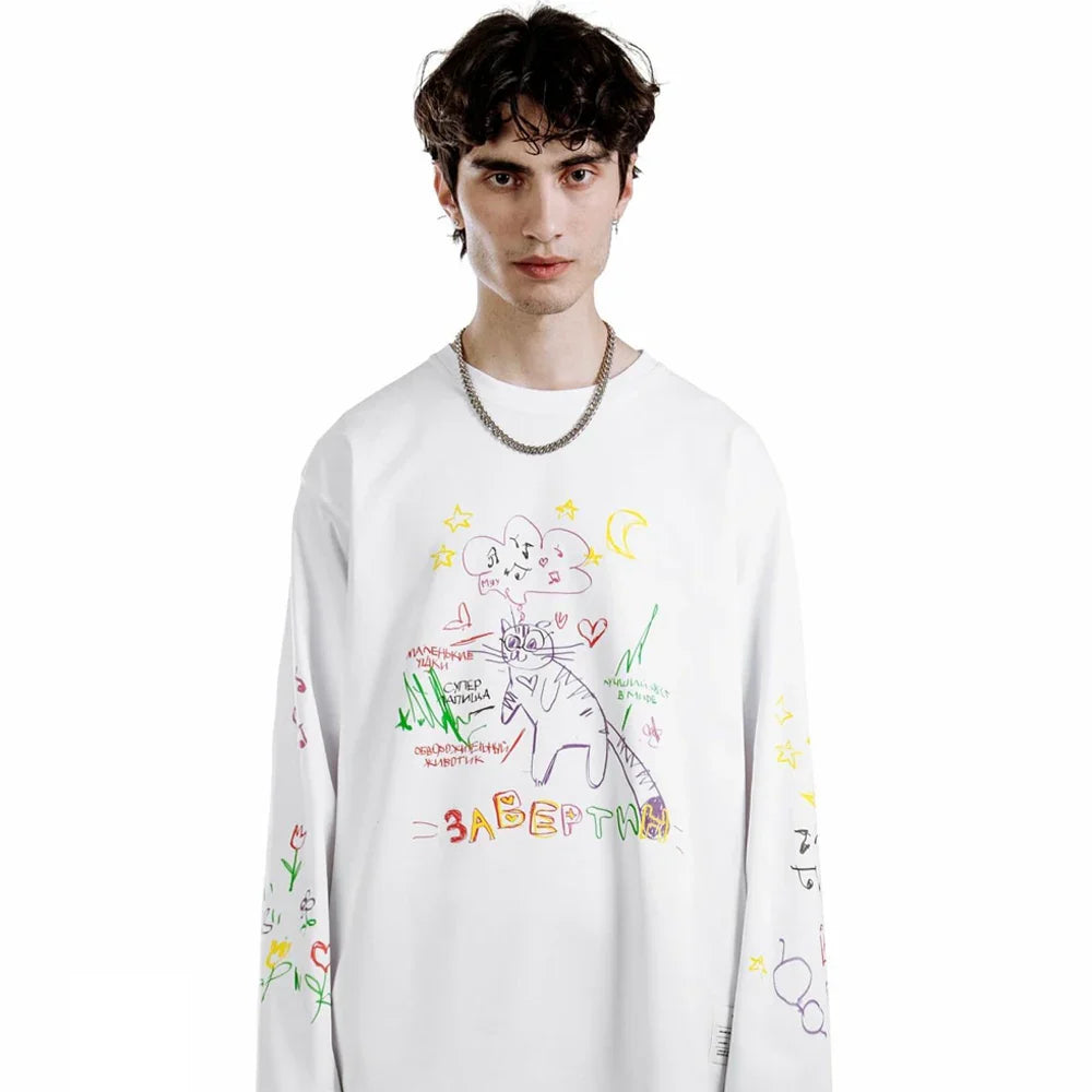 Scratch Cartoon Vibe Oversized Sweater brings playful charm to your wardrobe with its fun graphics and relaxed fit. Perfect for layering and staying cozy while showcasing your unique style!