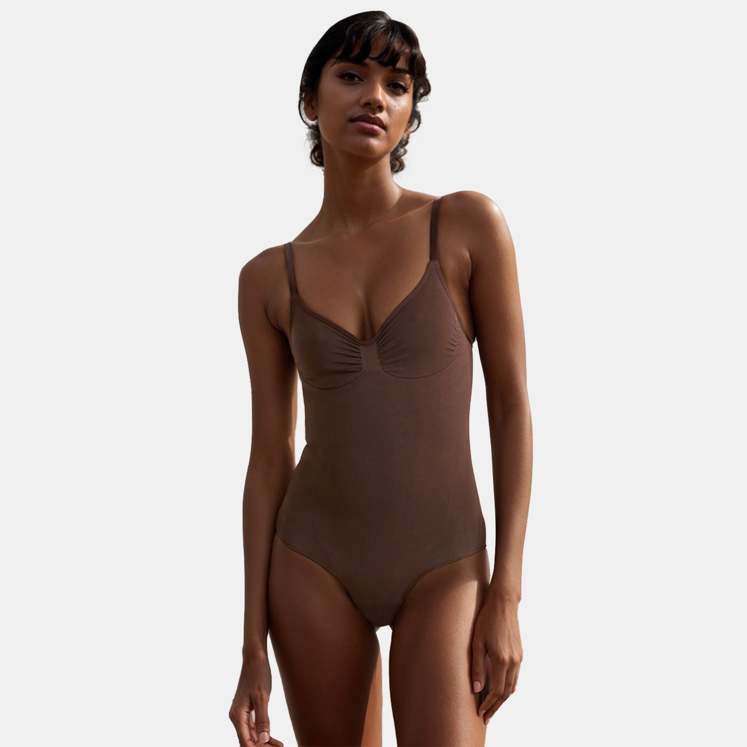 This Aresokshapewearbodysuit holds in your core. shapes and lifts your butt. and provides support for your chest. Its whisper-soft. seamless construction and high-cut leg make this sculpting piece an essential for enhancing your body's natural shape.
