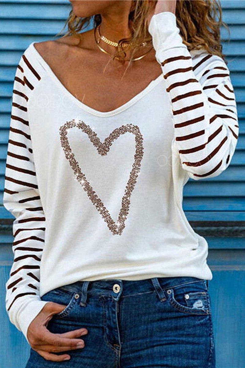 Sequin Heart Pattern Long Sleeve T-Shirt