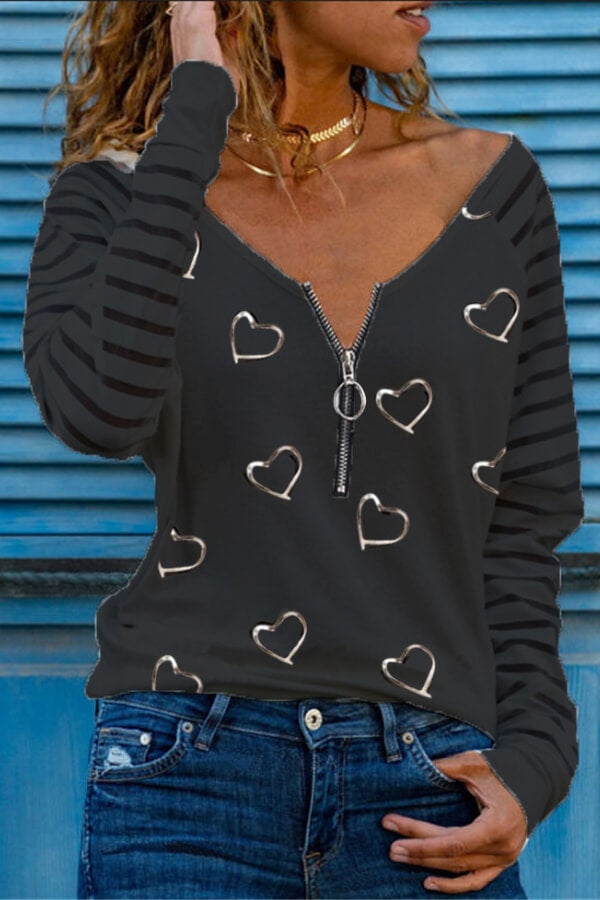 Increase quantity for Sexy V Neck Zipper Collar Basic Top
