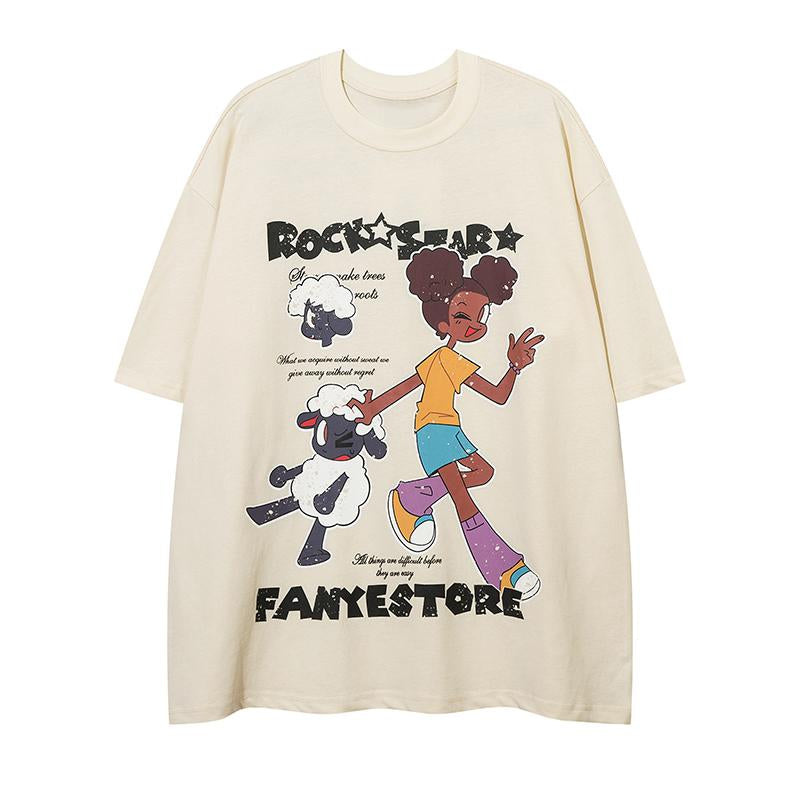 Add a whimsical touch to your outfit with our Sheep and Shepherd Girl T-Shirt. Featuring a charming design. this tee combines comfort and playful style. perfect for casual days.