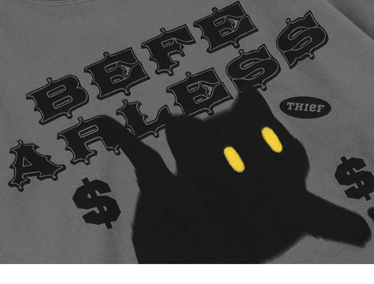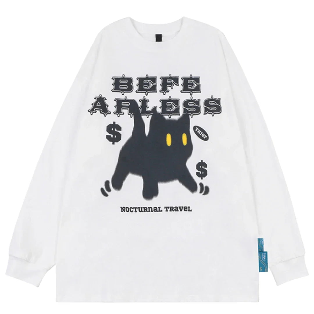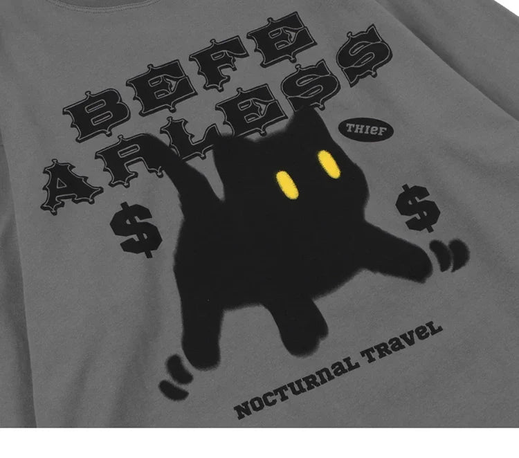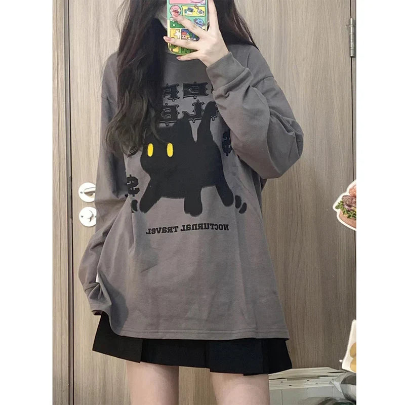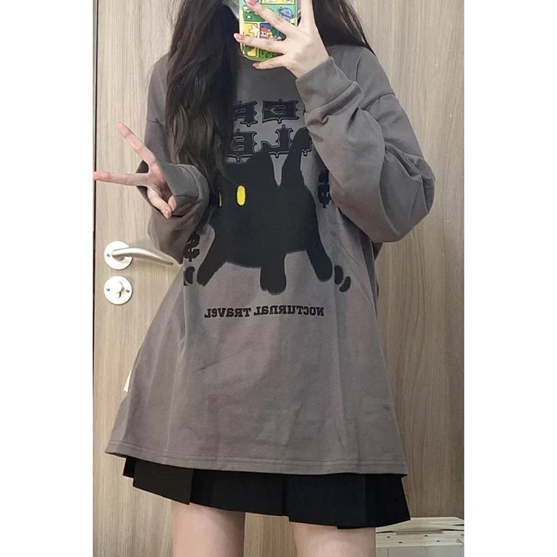 Shocked Black Kitty Sweater: Playful and cozy. featuring a bold graphic of a surprised black cat. adding charm and whimsy to your casual look.