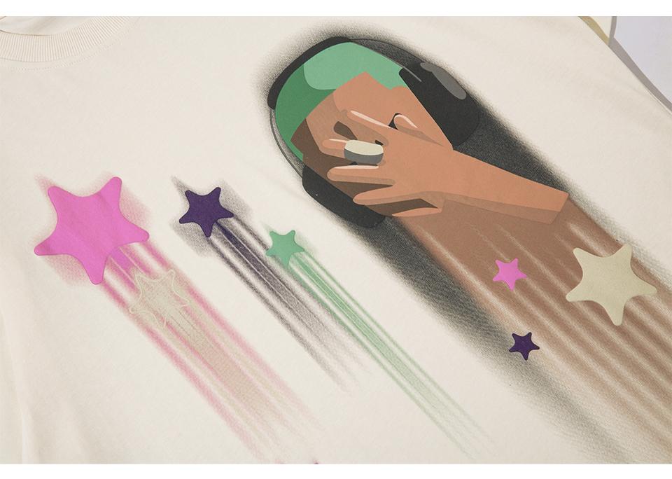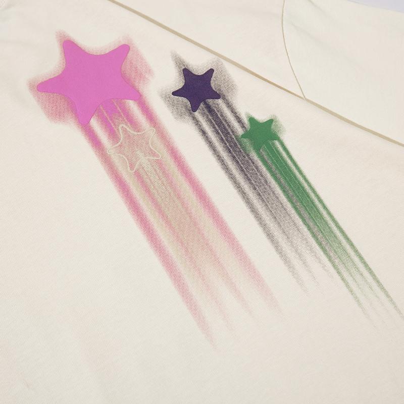 The Shooting Stars Loose Tee showcases a relaxed fit with a celestial graphic design. Perfect for a casual yet standout look. this tee combines comfort with a touch of cosmic charm.