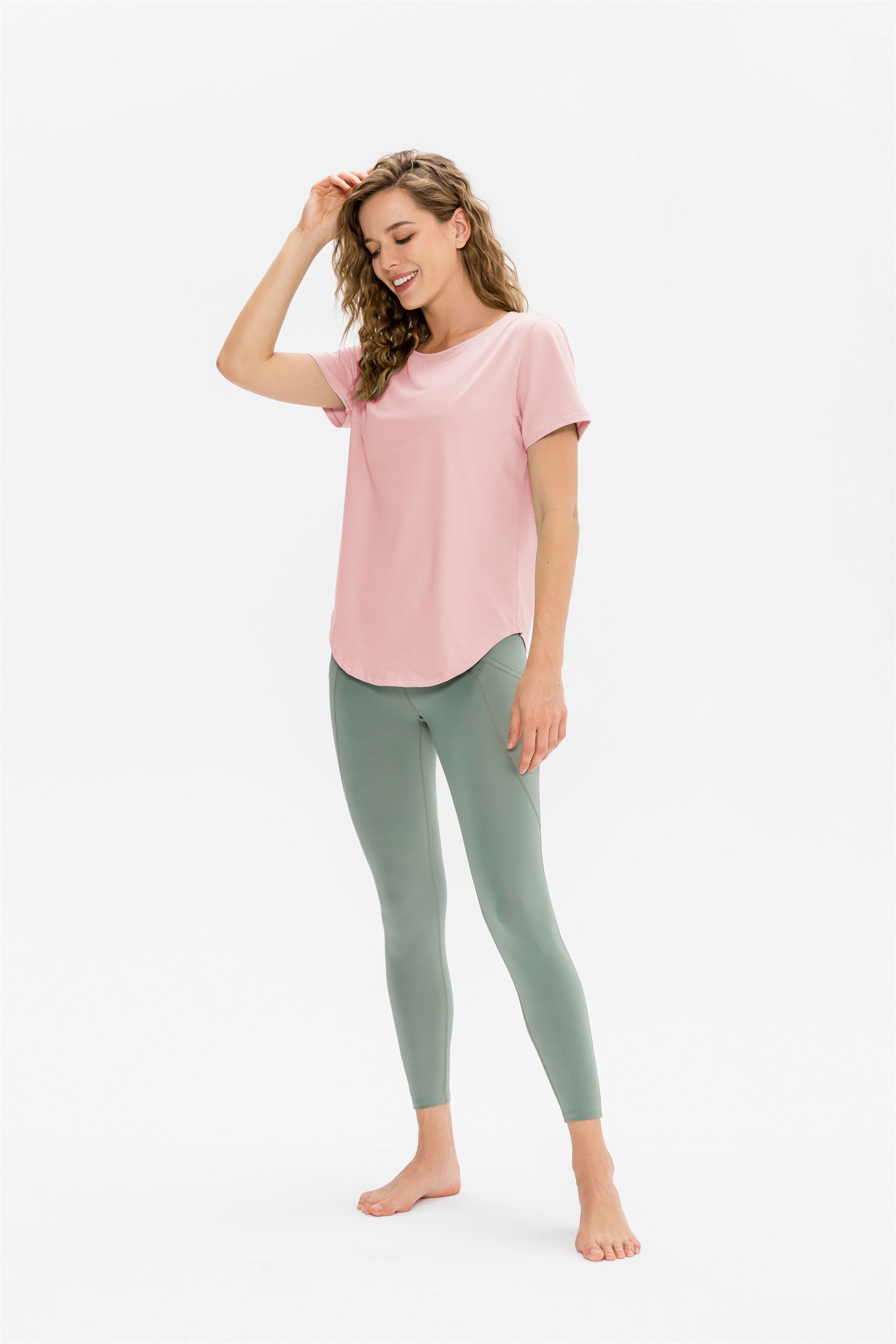 Increase quantity for Short Sleeve Curved Hem Sports Top