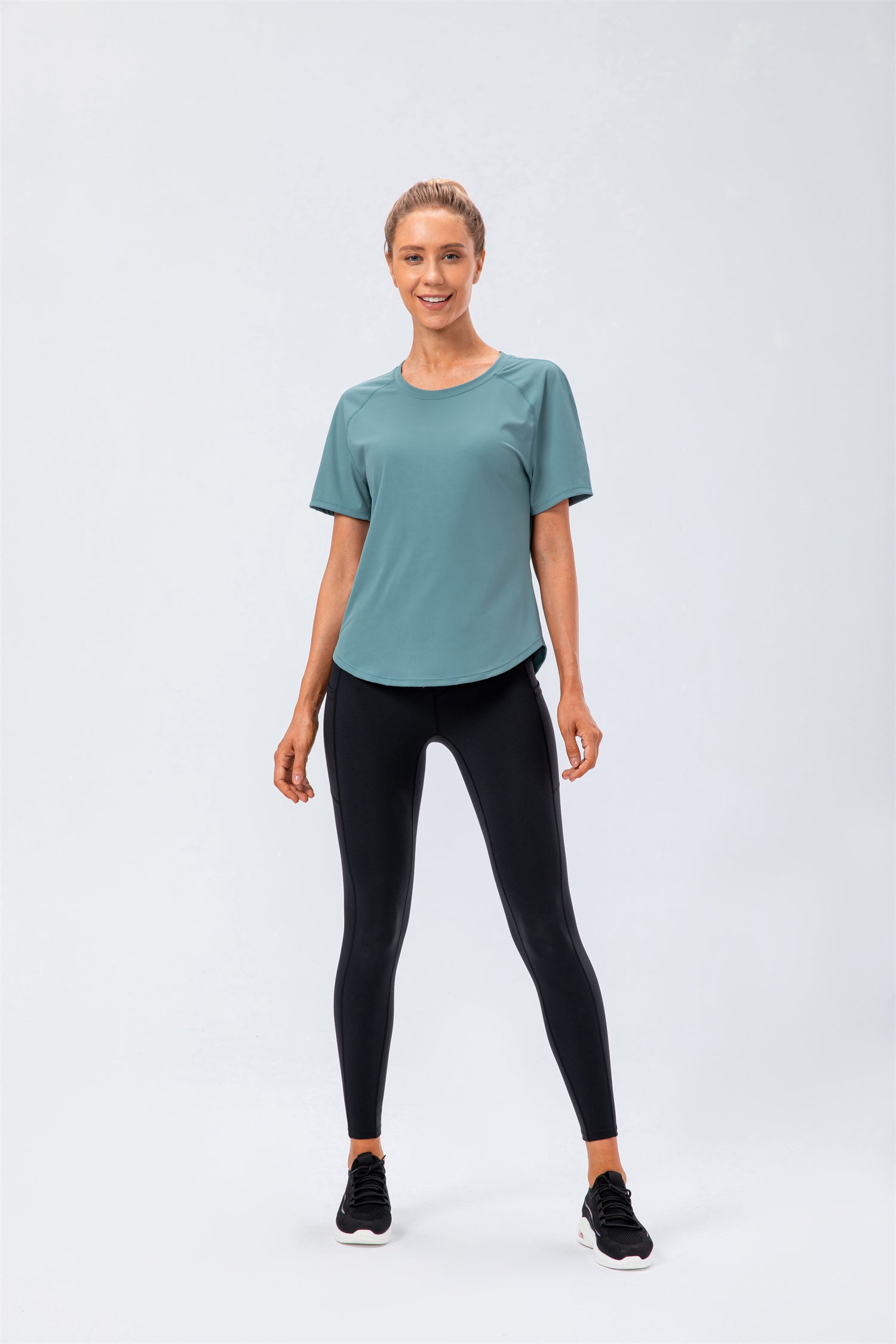 Short Sleeve Curved Hem Sports Top- Twinkle
