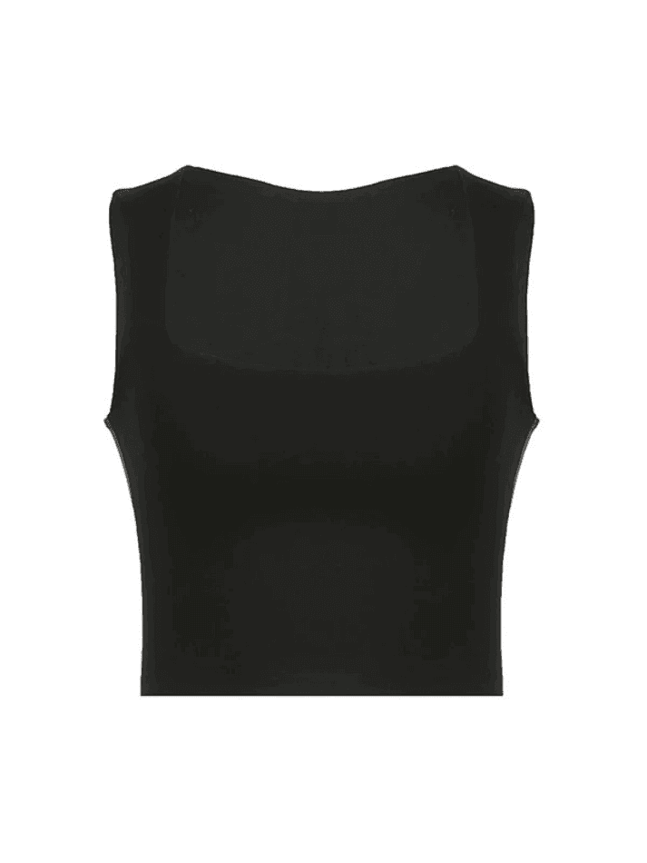Description: Take easy with these effortless tank tops for go-to outfits. it's trendy and versatile. Shaped to a skin-tight silhouette. features irregular tank shoulder straps. and has an open retro square neck design.