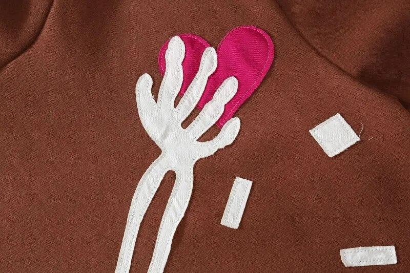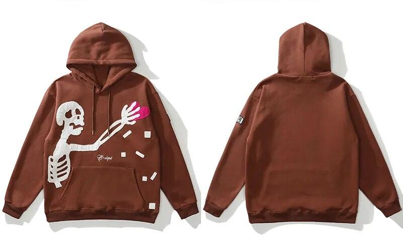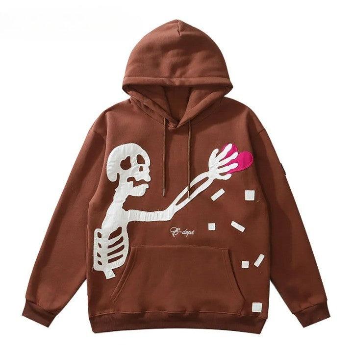 This Skeleton Patch Fleeced Hoodie is made of a blend of breathable cotton and polyester for a comfortable fit. It features a regular length and a hooded design for added warmth.