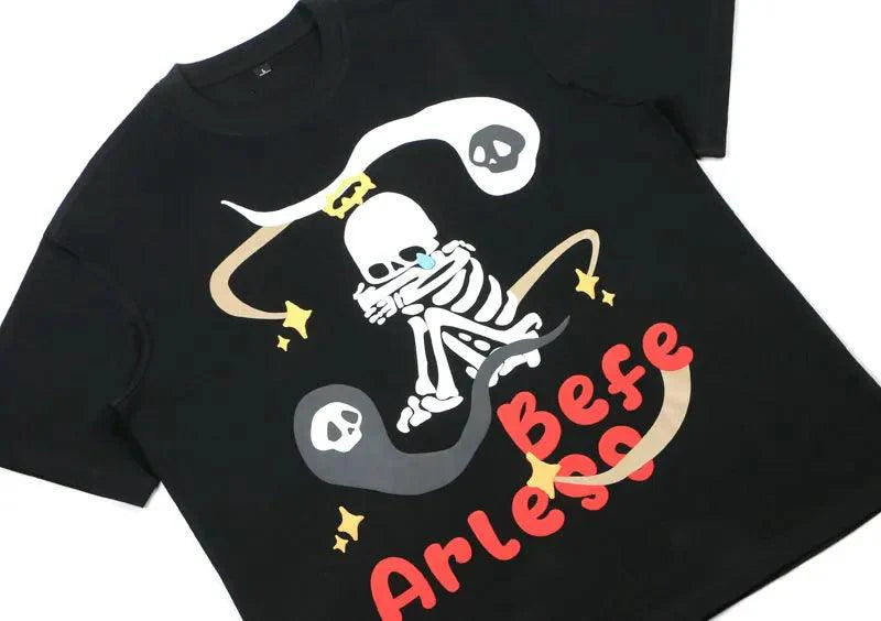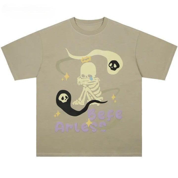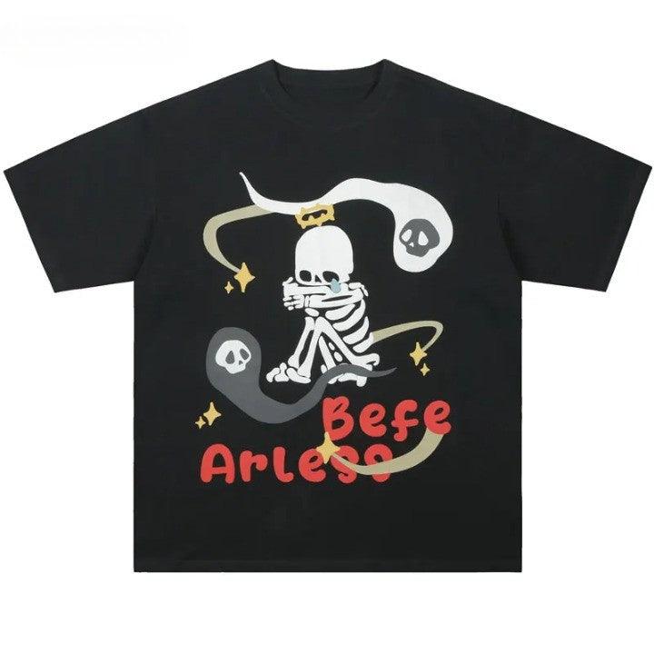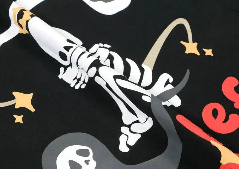Add a vintage edge to your street style with our Skull Skeleton Print Oversized T-Shirt. Made of cotton on Broadcloth. featuring a bold skull pattern.