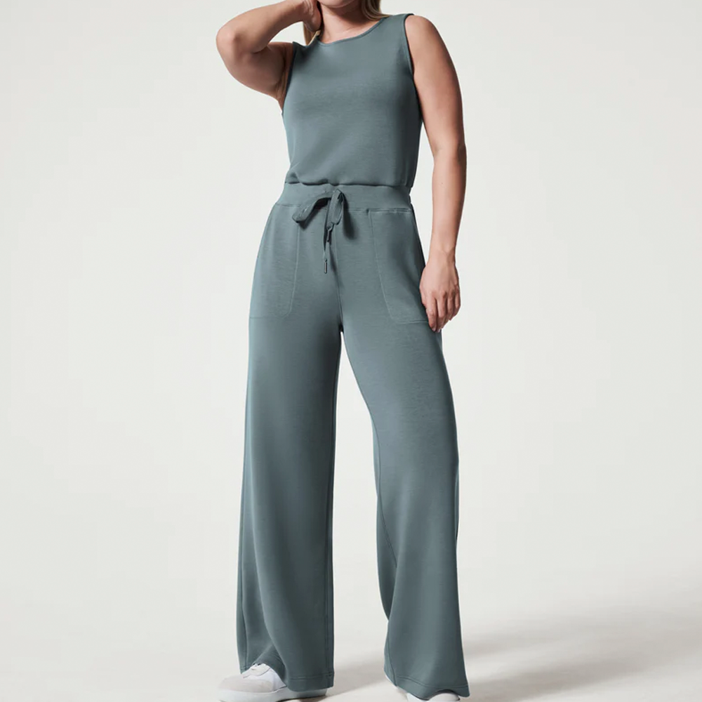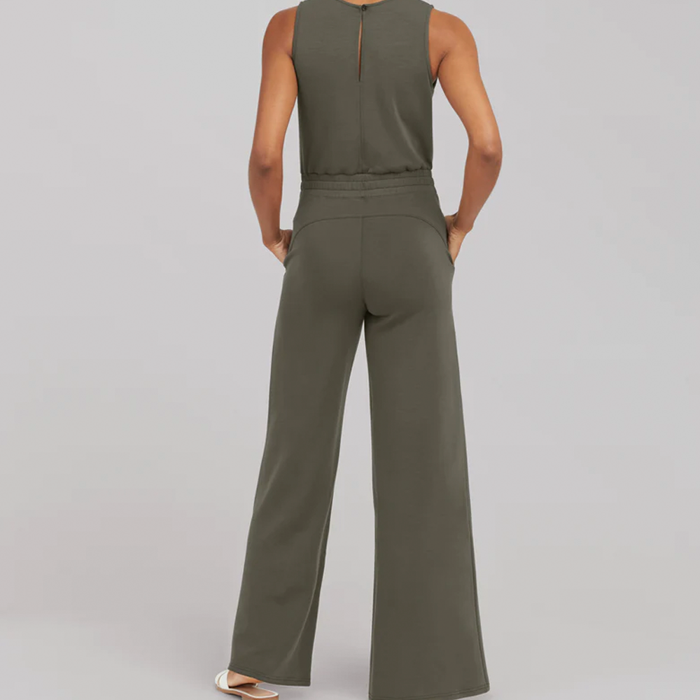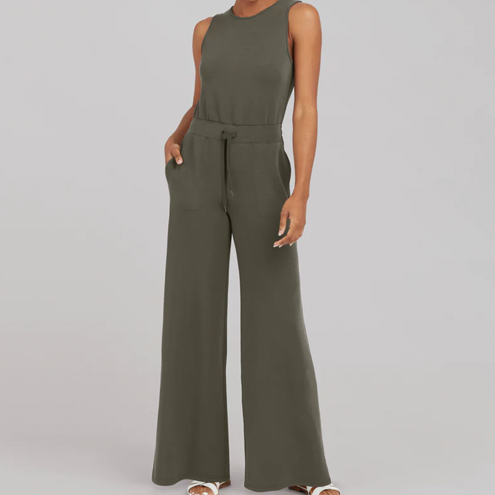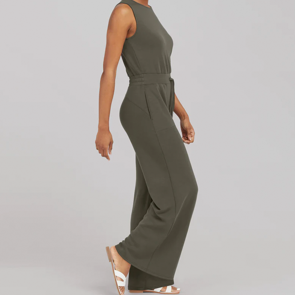 Made with spacer fabric that's lightweight. luxuriously soft and ultra drapey. this Sleeveless Jumpsuit is your one-stop-shop for total comfort and flattery. Designed with refined comfort to feel silky against your skin. this throw-on-and-go style will take you anywhere and everywhere.