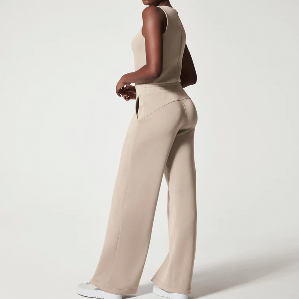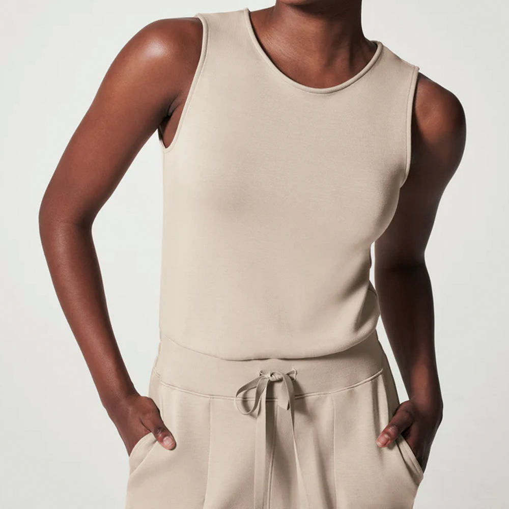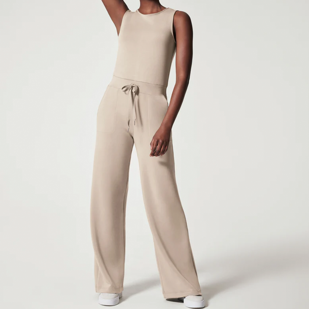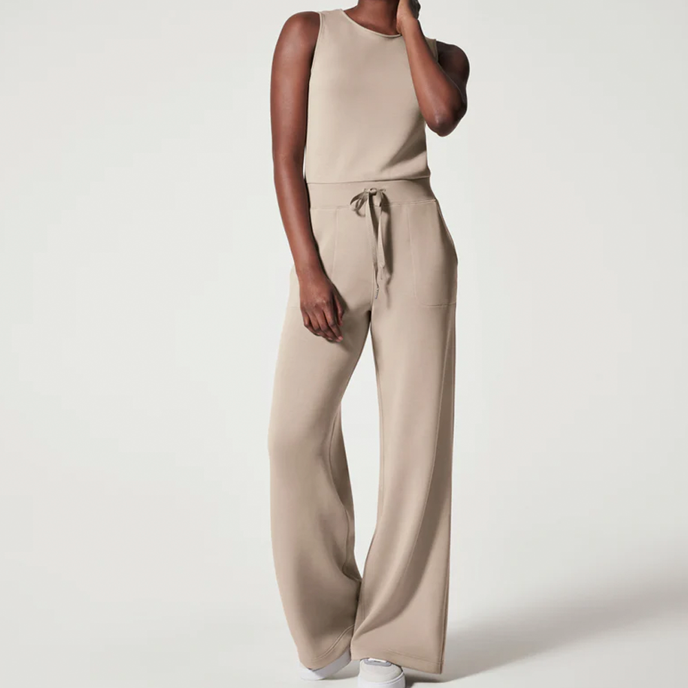 Made with spacer fabric that's lightweight. luxuriously soft and ultra drapey. this Sleeveless Jumpsuit is your one-stop-shop for total comfort and flattery. Designed with refined comfort to feel silky against your skin. this throw-on-and-go style will take you anywhere and everywhere.