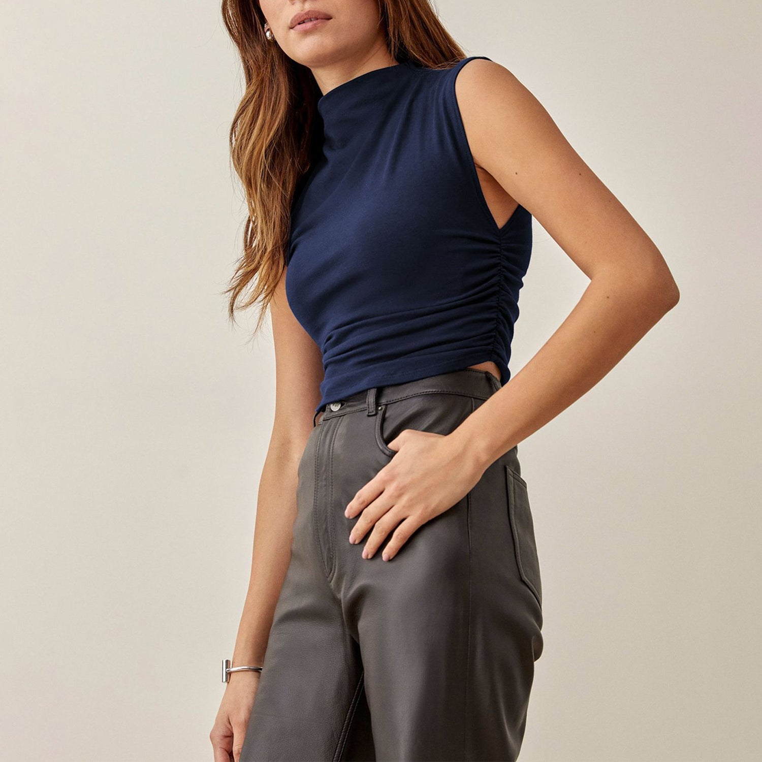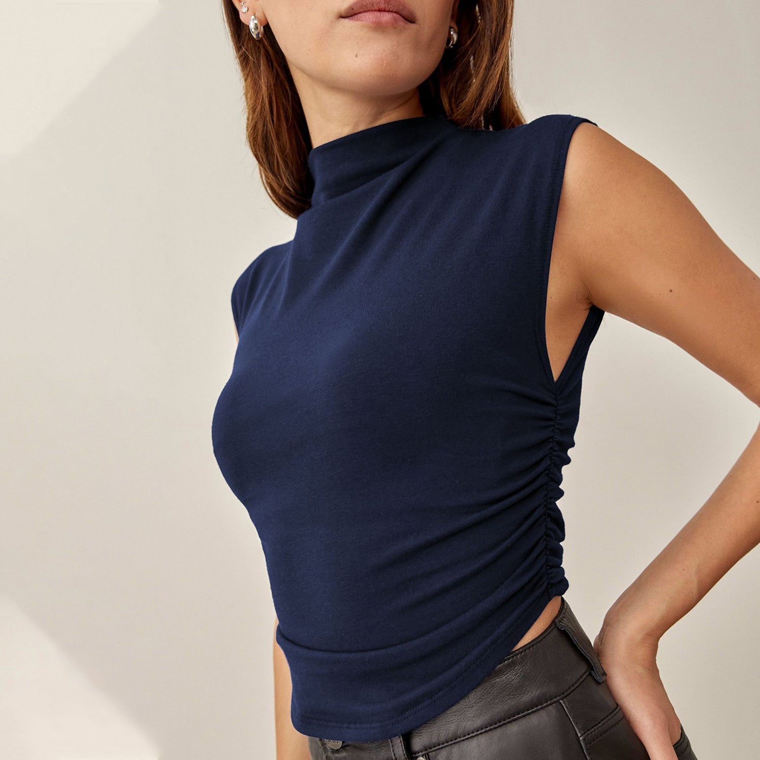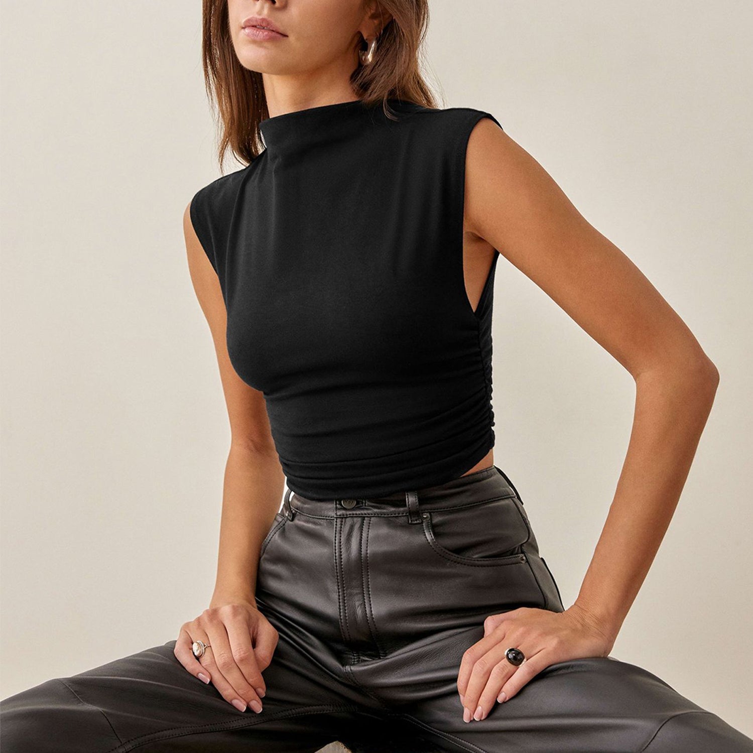 Increase quantity for Sleeveless Mock-Neck Ruched Top