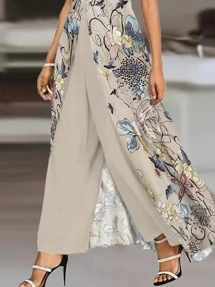 This set featuring a high-slit floral sleeveless dress and elastic waist wide-leg pants exudes unique design and a fashionable vibe. Firstly. the dress boasts a high-slit design. accentuating the alluring lines of the legs and enhancing the feminine charm. The sleeveless design makes it suitable for wearing in spring and summer. adding an elegant. The floral pattern injects vitality and color into the overall look. making it more eye-catching. On the other hand. the loose elastic waist design of the wide-leg pants provides a comfortable wearing experience. suitable for wearers of all body types. The loose pants legs ensure comfort and convey a casual yet stylish atmosphere. Overall. this set features innovative and fashionable design. suitable for various occasions. allowing wearers to showcase both personality and style while maintaining comfort and ease.