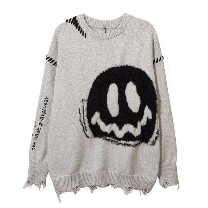 This Smiley Face Punk Jumper Sweater is constructed from a combination of premium cotton and polyester. and designed with a thick. O-neck collar. The pattern is a printed design.