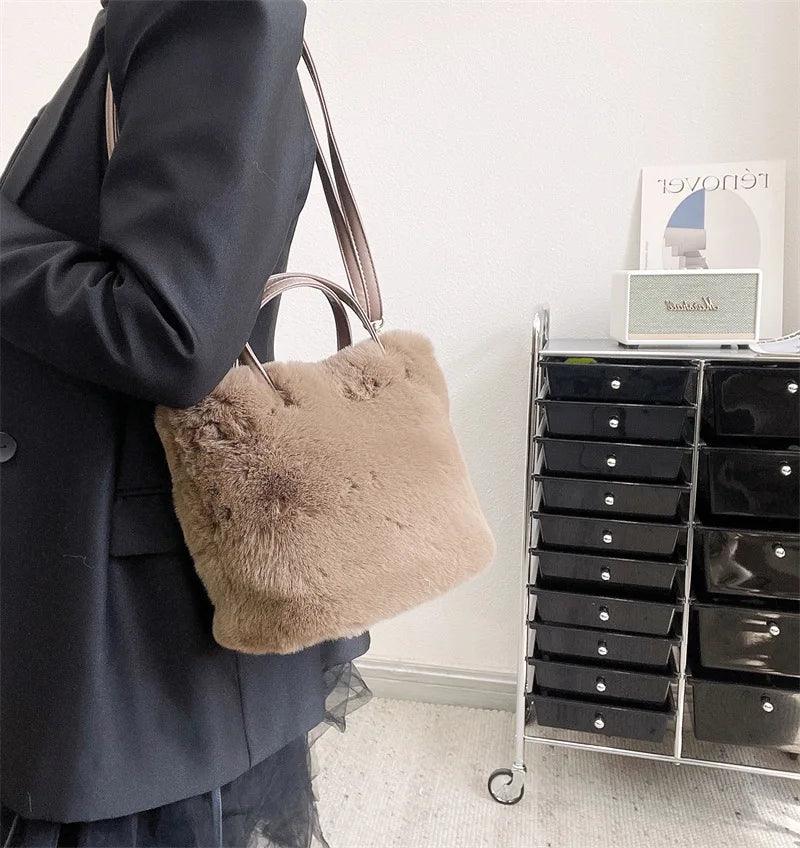 Introducing Vonvex's Soft Faux Rabbit Women's Bag. a blend of faux fur. faux leather. and rabbit fur for a luxurious feel. Featuring fur. spliced. and vintage decorations. crafted with full pelt technics. With a wide-waisted design and fur-trimmed collar. it offers a stylish statement. Sleeveless with regular sleeve style. it's both chic and versatile for any occasion.