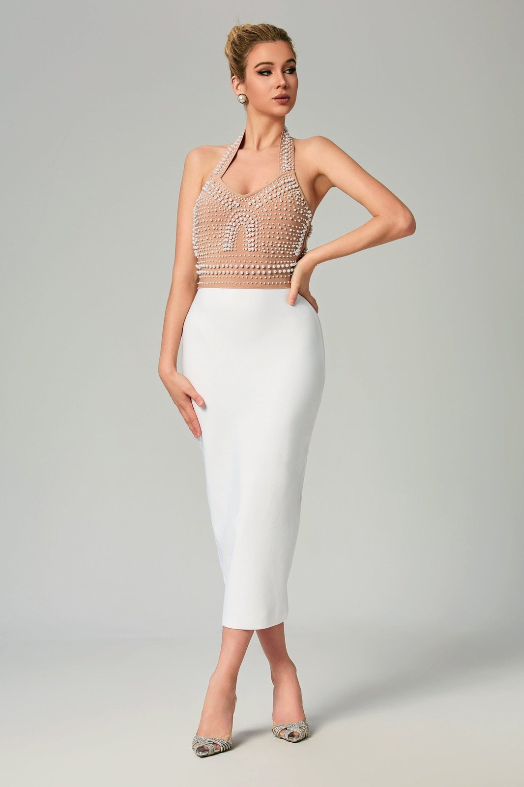 The Solana Pearl Halter Bandage Dress is an exquisite ensemble crafted with sumptuous materials. Its luxe bandage fabric and pearl halter neckline make it the perfect choice for any special occasion. Get ready to be draped in luxury with this versatile and sophisticated dress.
