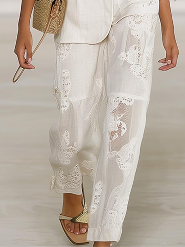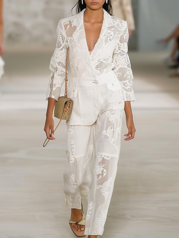 �Introducing our newest must-have for commuting and beyond: a crisp white lace blazer.