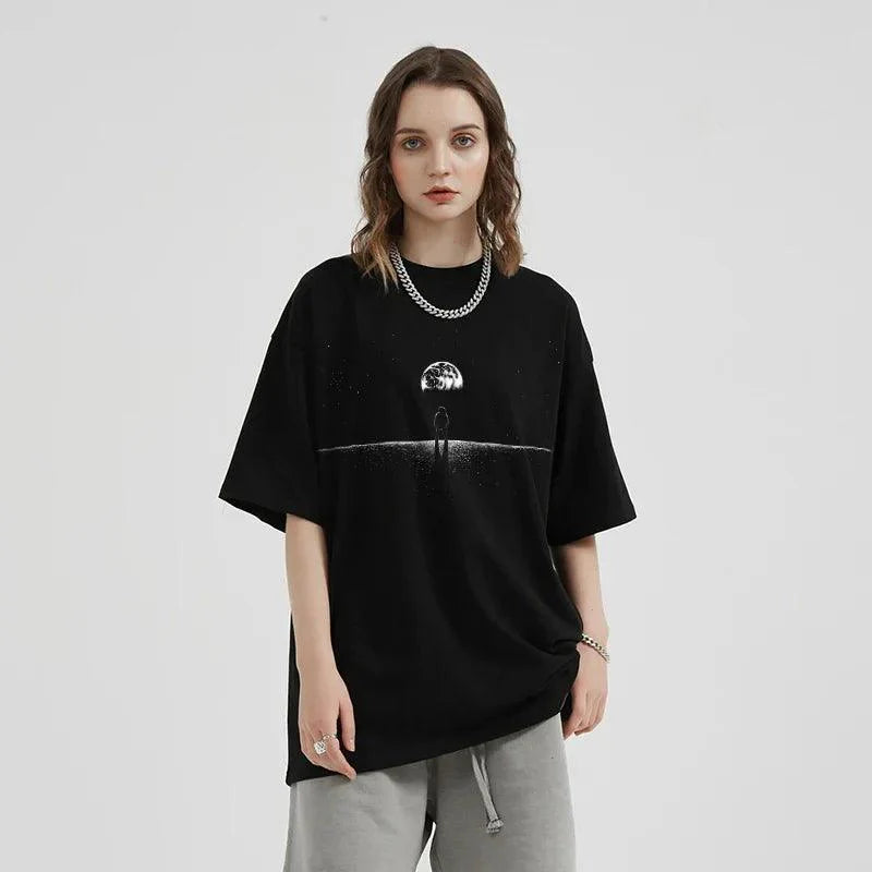 Explore the cosmos in style with our Space Astronaut Graphic Casual T-Shirt. Crafted from comfy cotton broadcloth. featuring a knit letter pattern and an O-Neck collar.