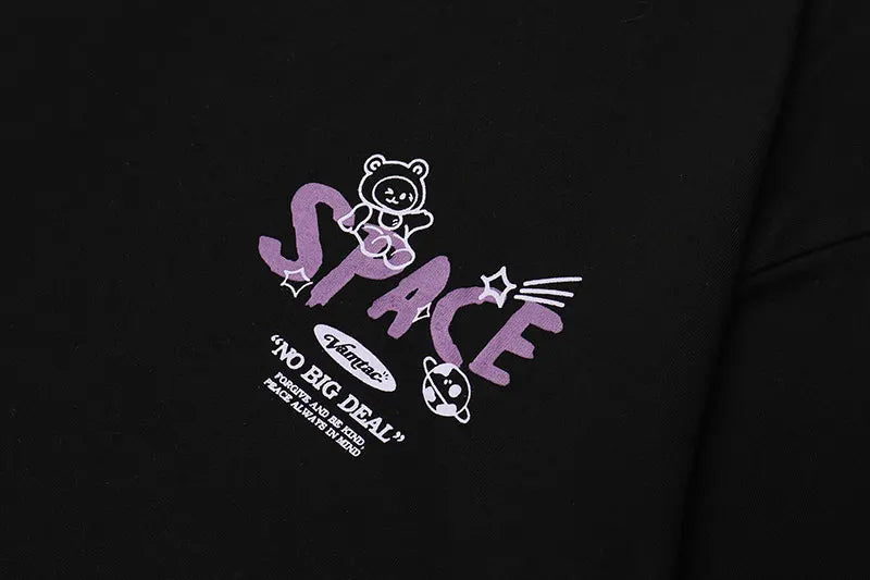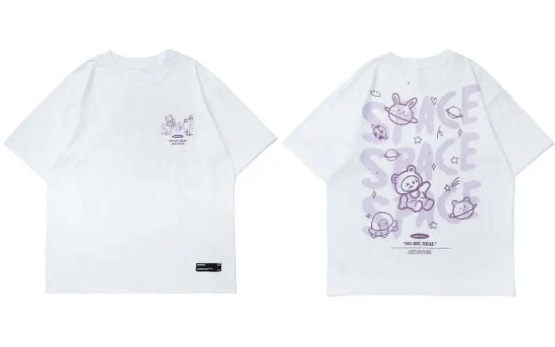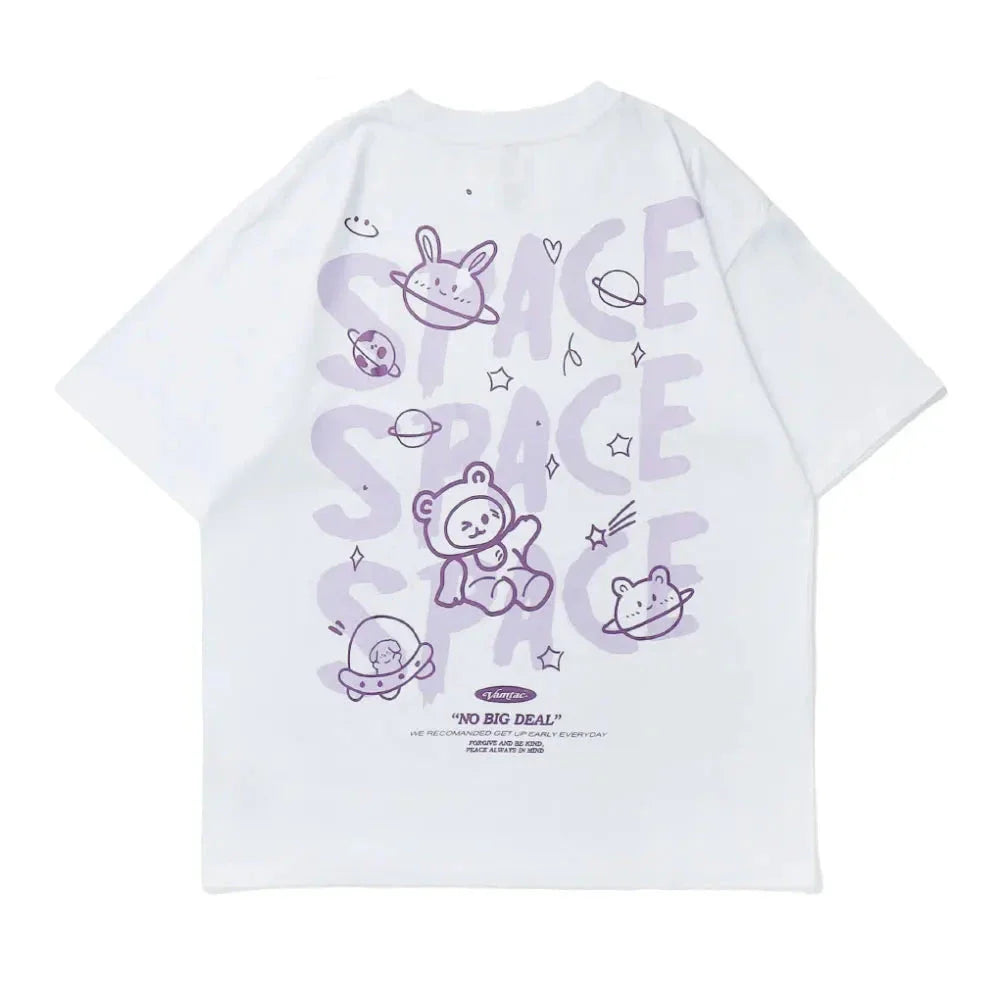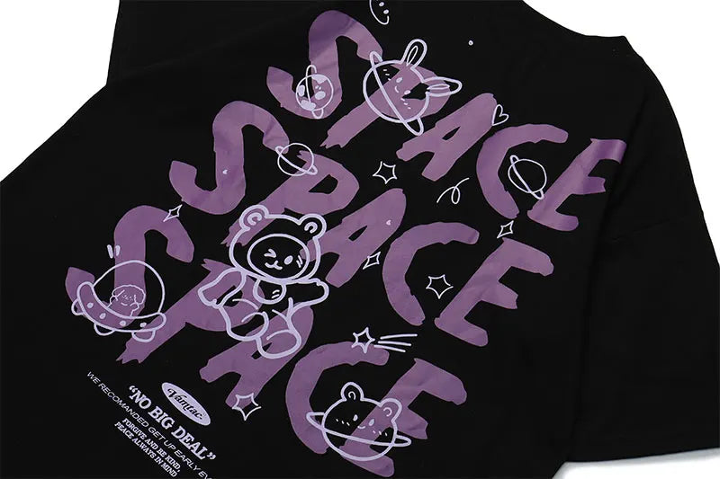 The Space Buddies Oversized T-Shirt features playful. cosmic graphics. bringing a fun intergalactic vibe to any relaxed. streetwear outfit.