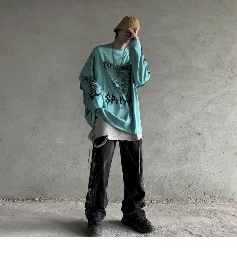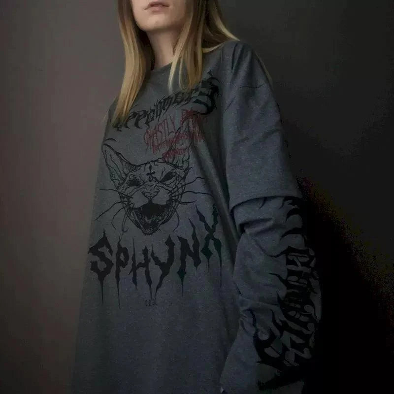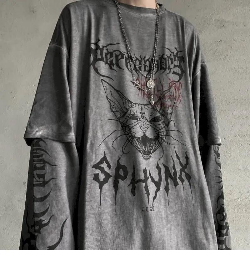 The Sleeve Length of this SPHYNX Harajuku Gothic T-Shirt is Full. and it is crafted from Cotton. Polyester. Spandex. and Acrylic. The Collar is an O-Neck. and the Fabric Type is Broadcloth with a Print finish.
