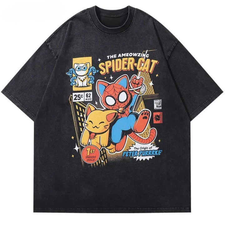 The Spooder Cat Oversized T-Shirt adds a fun. quirky twist with a unique spider-cat graphic. blending casual comfort with standout style for any laid-back look.