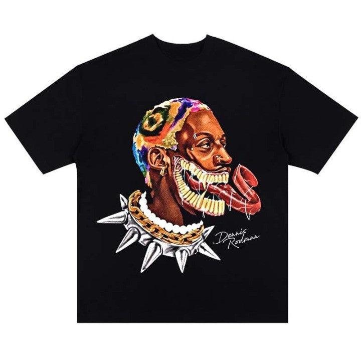 Elevate your style with the Spoof Rodman Oversized T-Shirt. Made of cotton. featuring short sleeves. an O-neck collar. and unique print pattern.