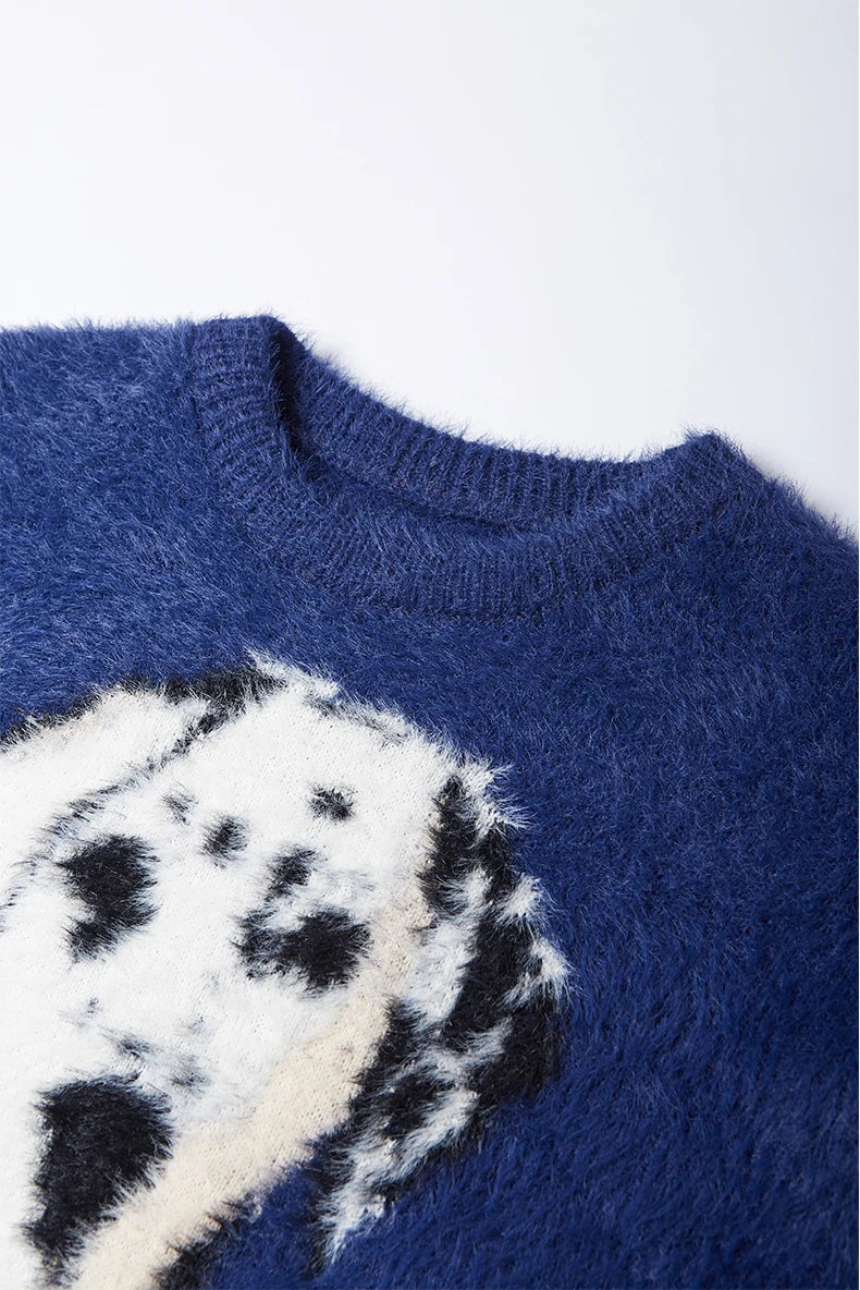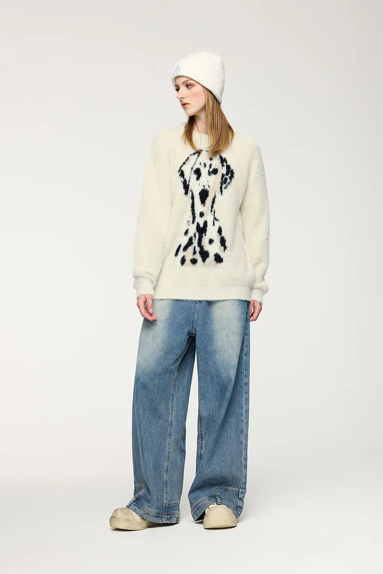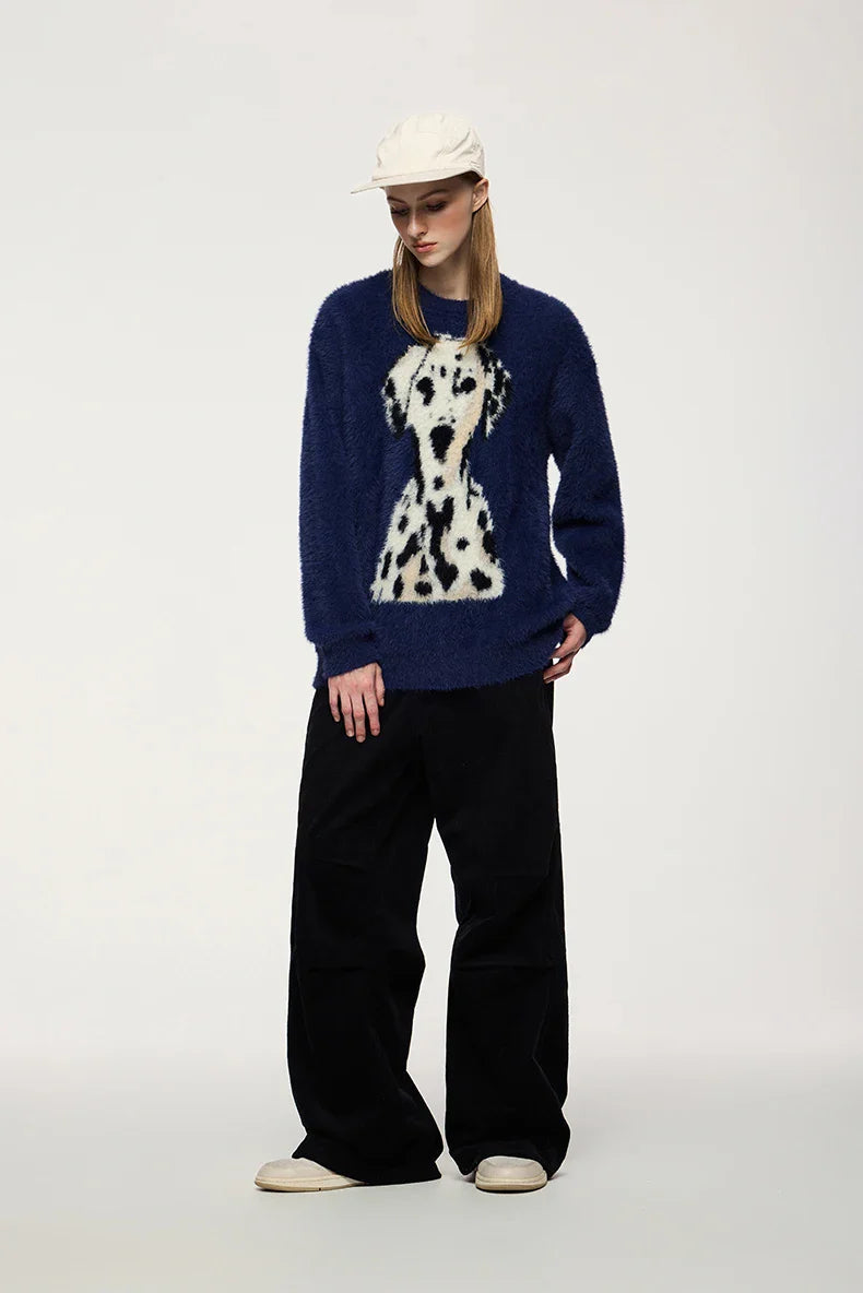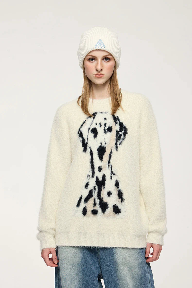 "Spotted Dog Loose Jacquard Sweater: Playful and cozy. featuring a charming dog pattern in a relaxed fit."