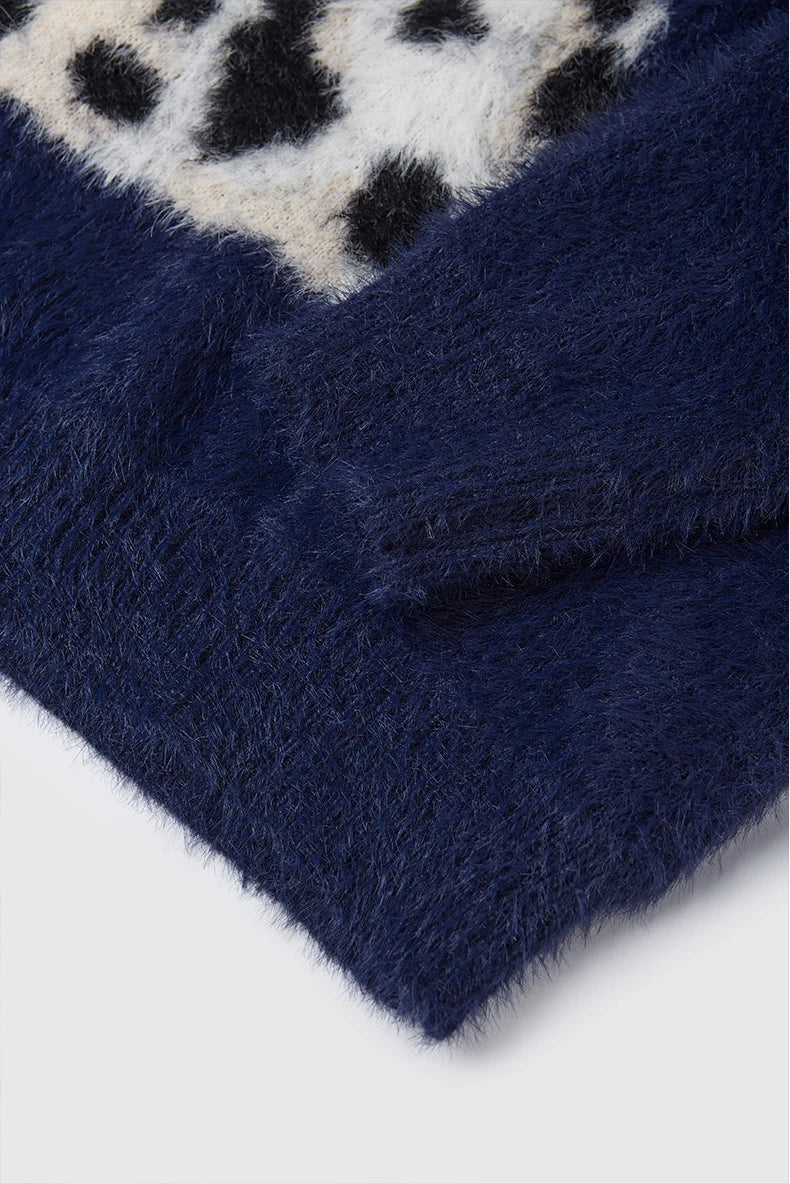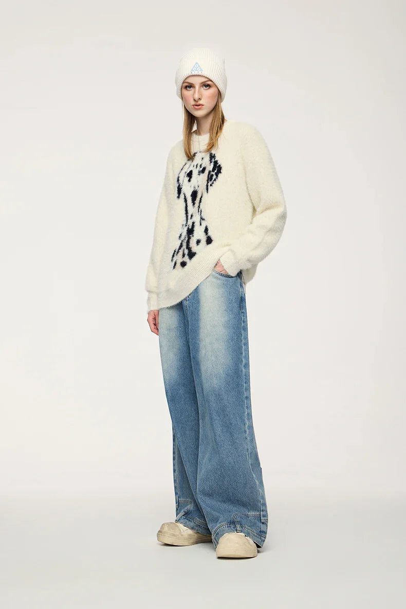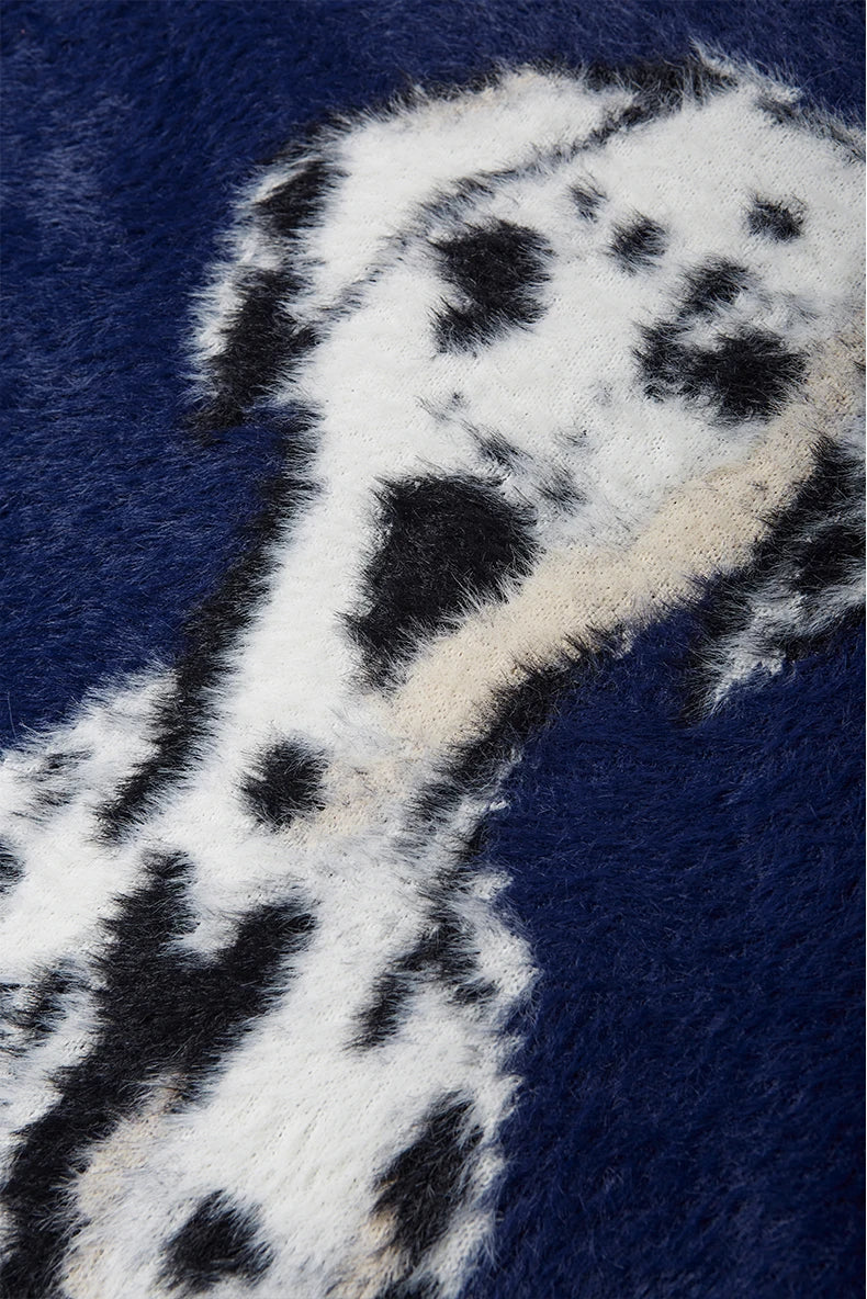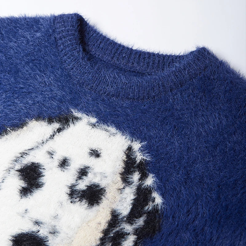 "Spotted Dog Loose Jacquard Sweater: Playful and cozy. featuring a charming dog pattern in a relaxed fit."
