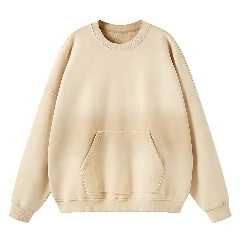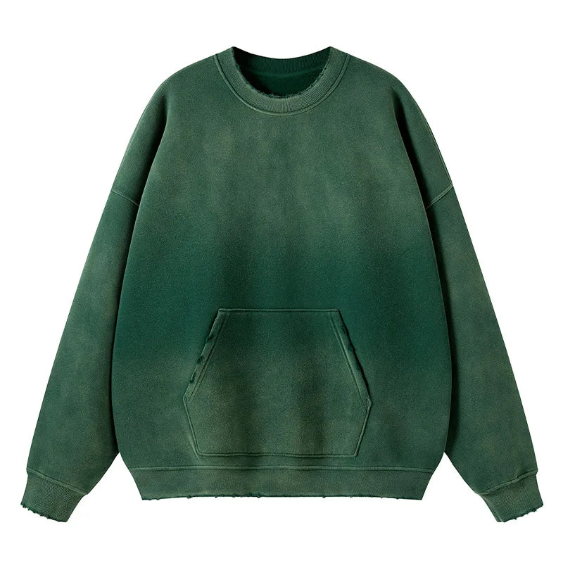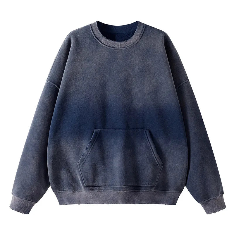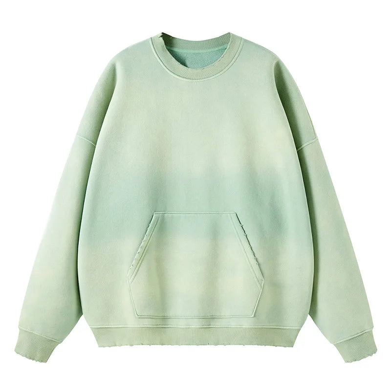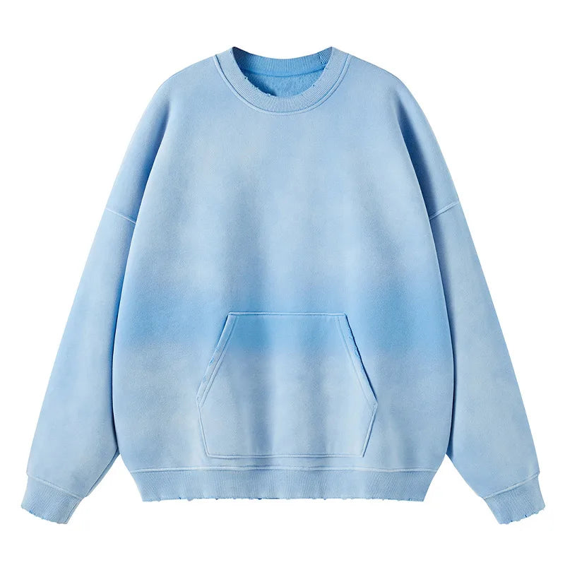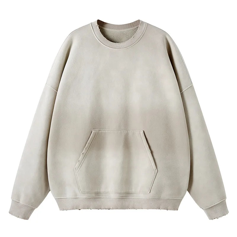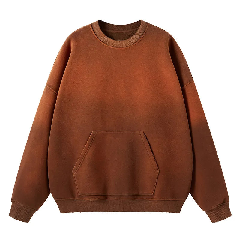 Introducing our Sprayed Color Oversized Sweatshirt. crafted from cotton and polyester. Featuring a solid pattern. standard thickness. and regular clothing length. it includes a comfortable O-neck collar. ensuring both style and ease for everyday wear.
