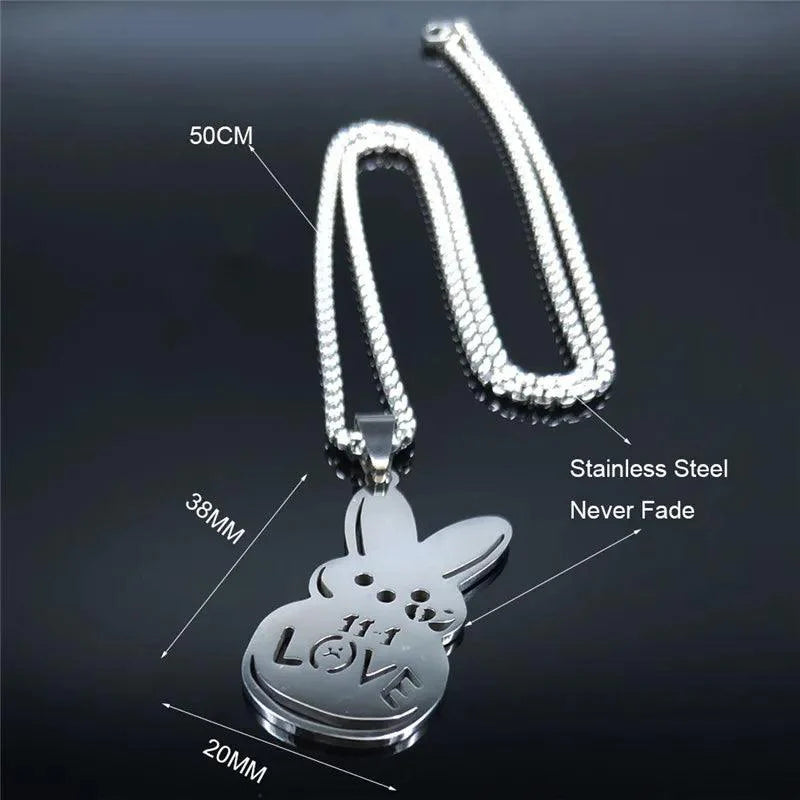 Discover Vonvex's Stainless Steel Rabbit Necklace. perfect for couples. Crafted from durable stainless steel. it features a charming rabbit statement pendant. With a link chain and 50 cm length. it's an ideal gift for Halloween or any occasion. Add a touch of whimsy to your style with this adorable necklace set from Vonvex.