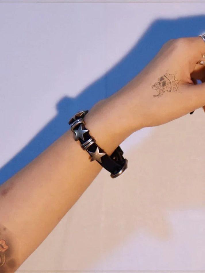 Increase quantity for Star Embellished Buckled Pu Leather Bracelet