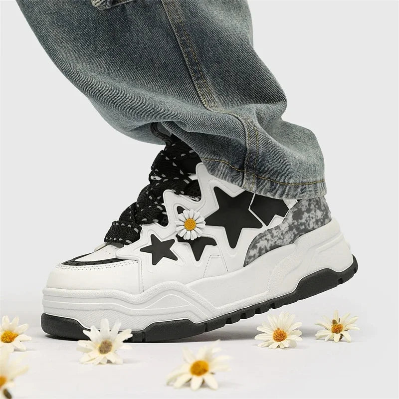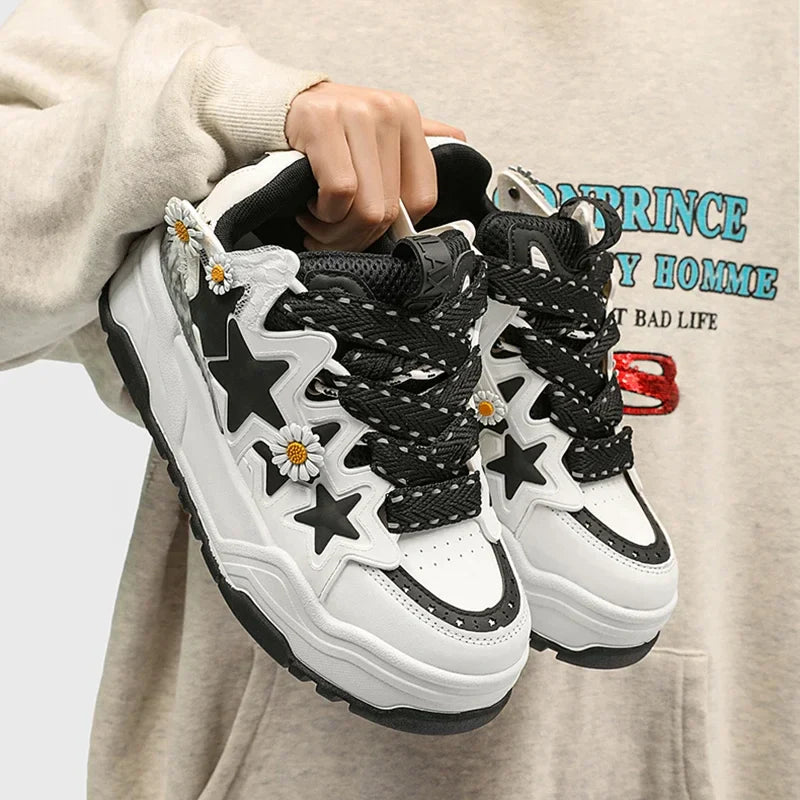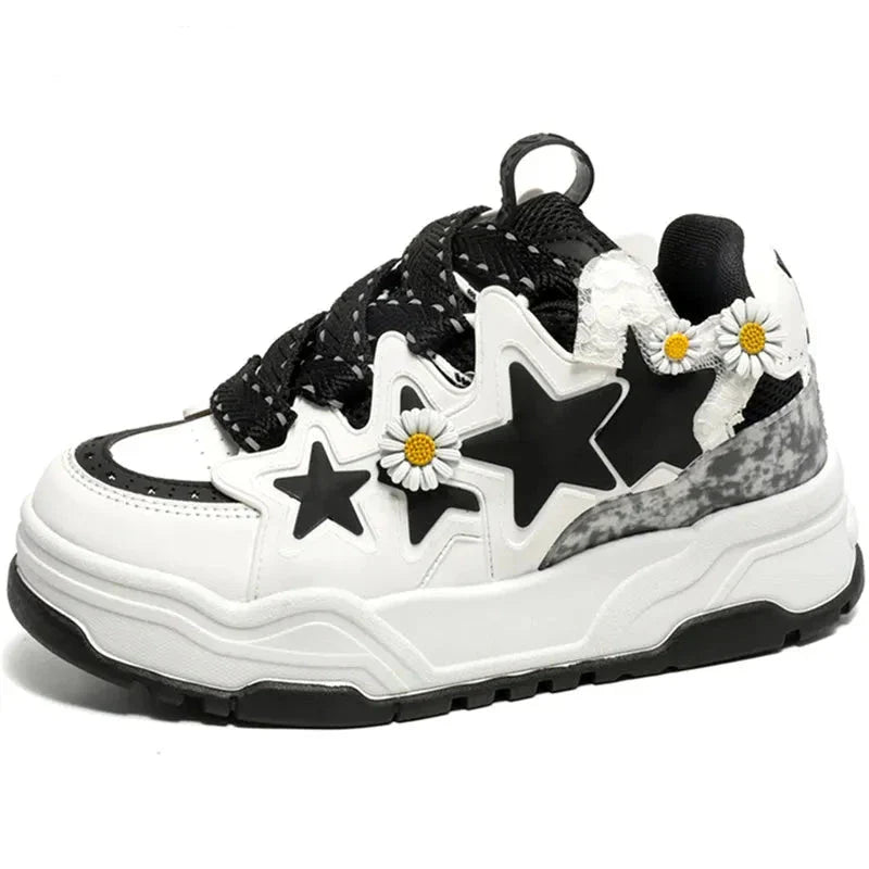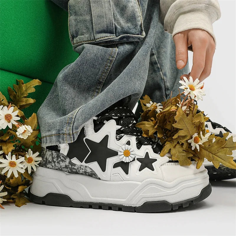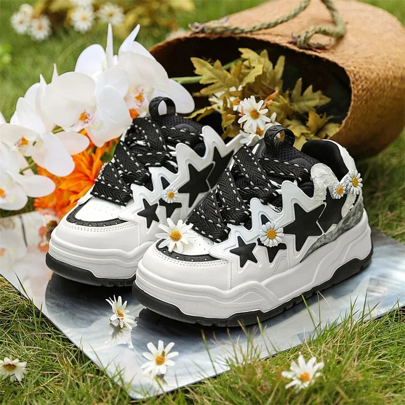 The Star Rise Flowers Sneakers feature a playful floral design accented with star motifs. combining vibrant colors and comfort for a fun and stylish footwear option that brightens up any casual look.