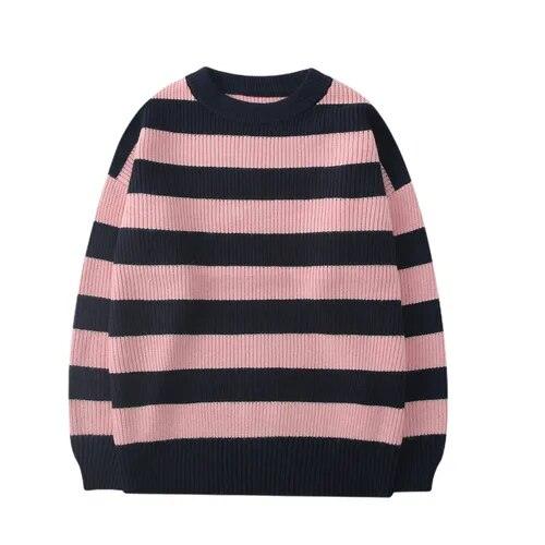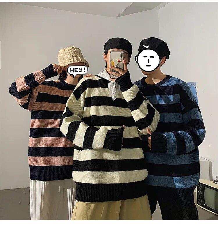 This Striped Harajuku Sweater is composed of polyester fabric. with an O-Neck collar and a standard wool thickness. This unique sweater is machine-knitted in a striped pattern.