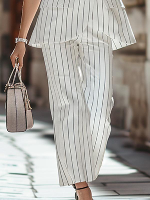 Available in a variety of colors to suit your personal taste. this versatile suit allows you to mix and match effortlessly with your existing wardrobe. Embrace urban sophistication and redefine your style with the Striped Sleeveless Vest and Cropped Pants Urban Beauty Suit.