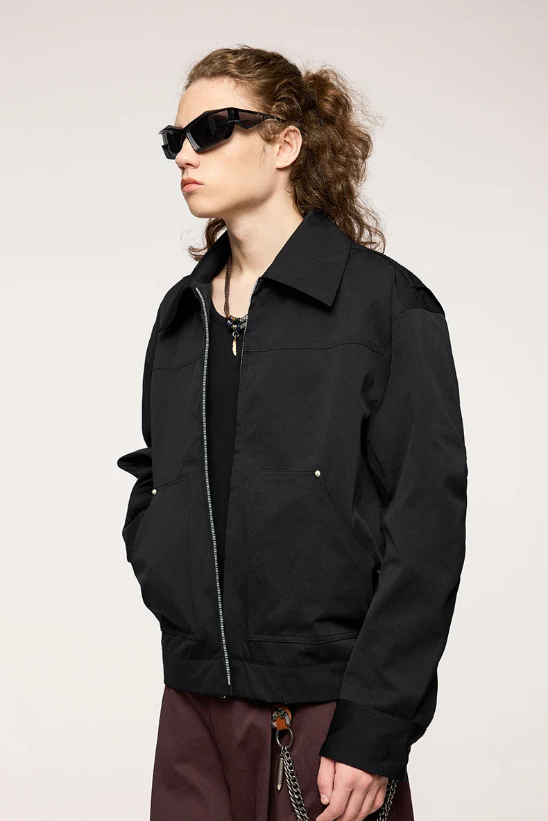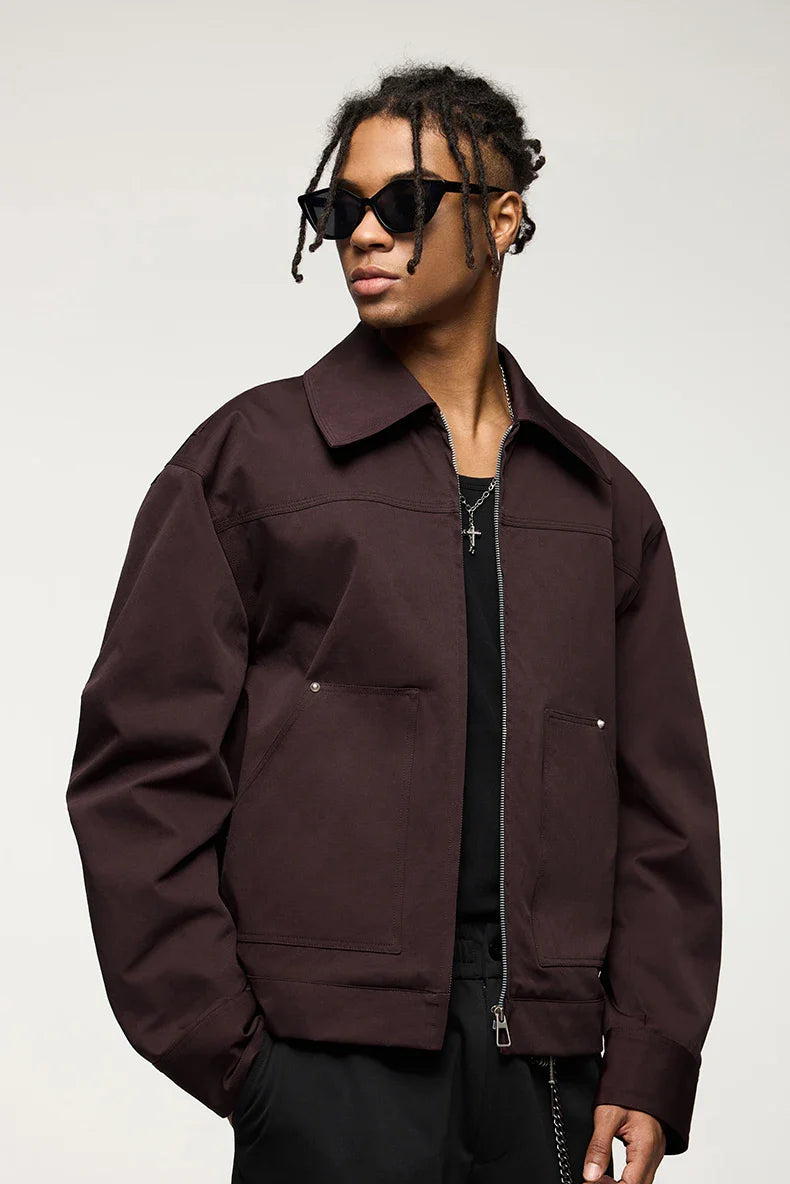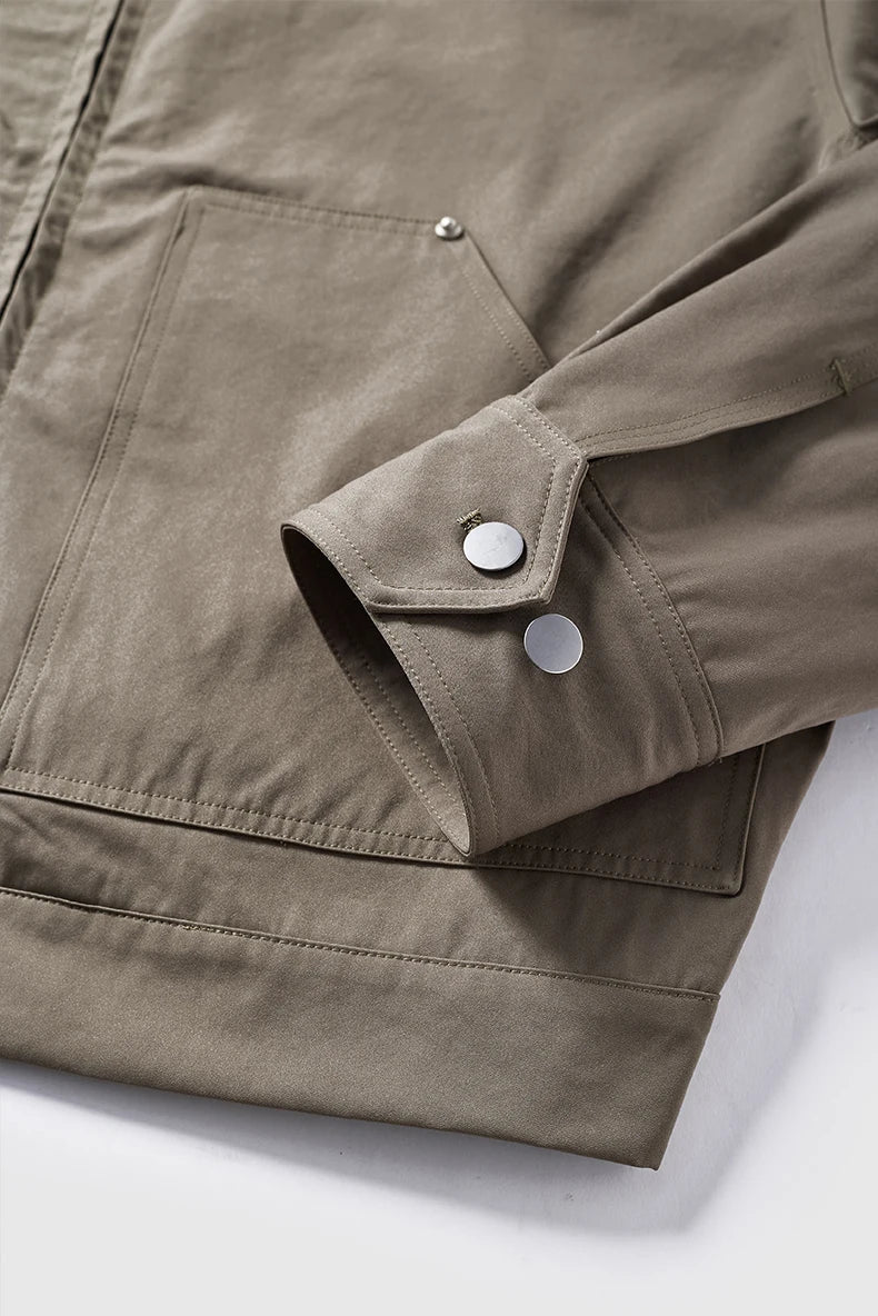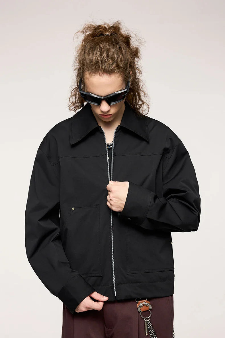 "Studded Stretch Crop Cargo Jacket: Edgy and functional. featuring studded details and a cropped design for bold streetwear vibes."