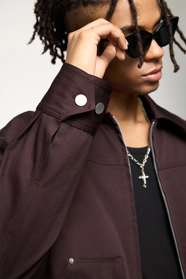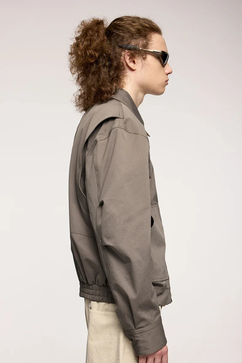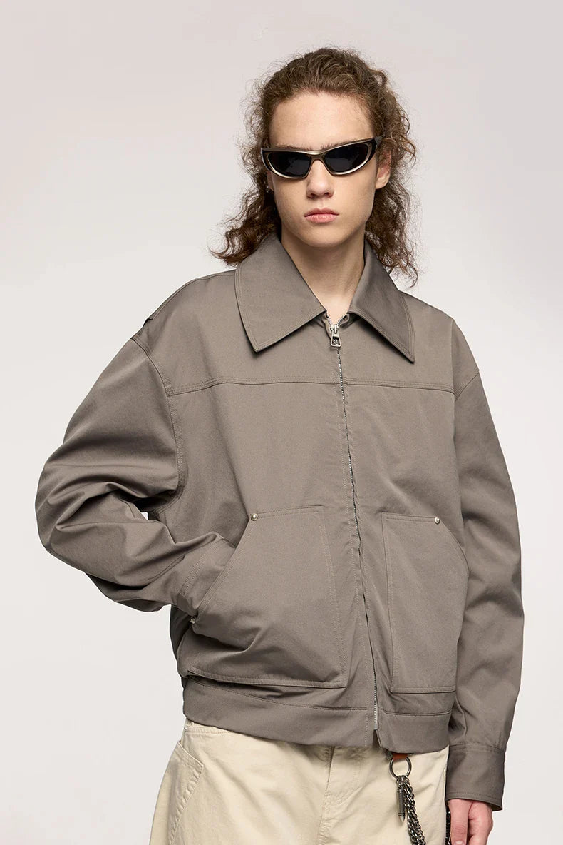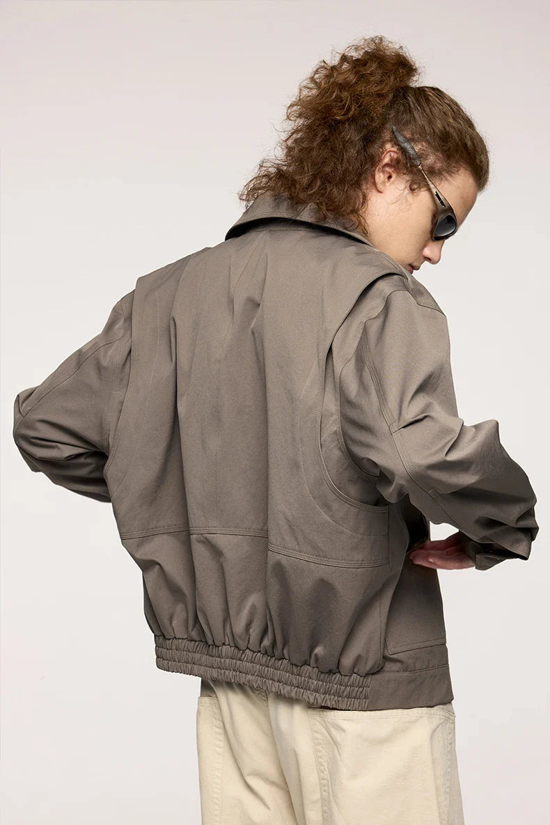 "Studded Stretch Crop Cargo Jacket: Edgy and functional. featuring studded details and a cropped design for bold streetwear vibes."