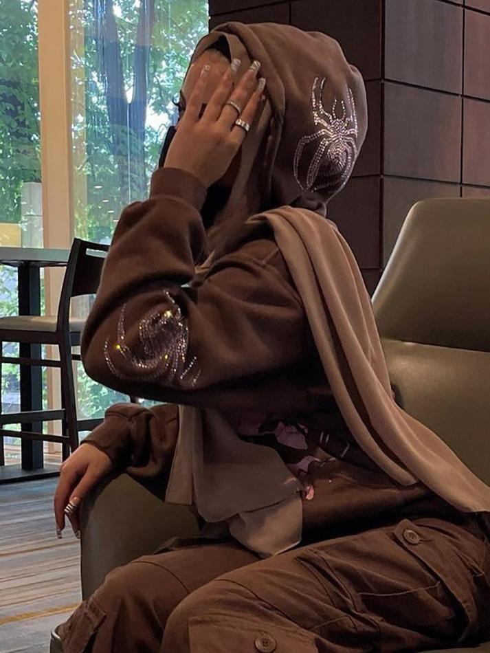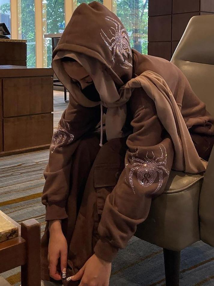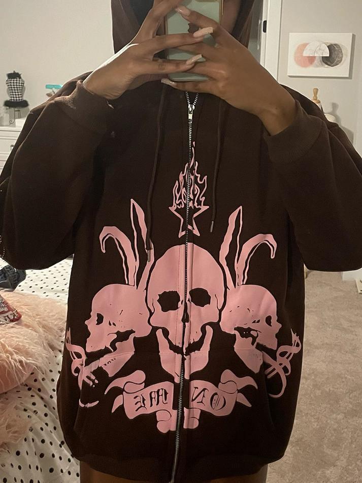 *Features: Zip-up hoodies. Goth jacket with pockets. Rhinestone Graphic. Skeleton print. Grunge Skeleton Graphic Sweatshirt. E-Girl style. Vintage. Y2K. 90s Aesthetic Hoodies. Streetwear. Clubwear. Halloween Outfit.