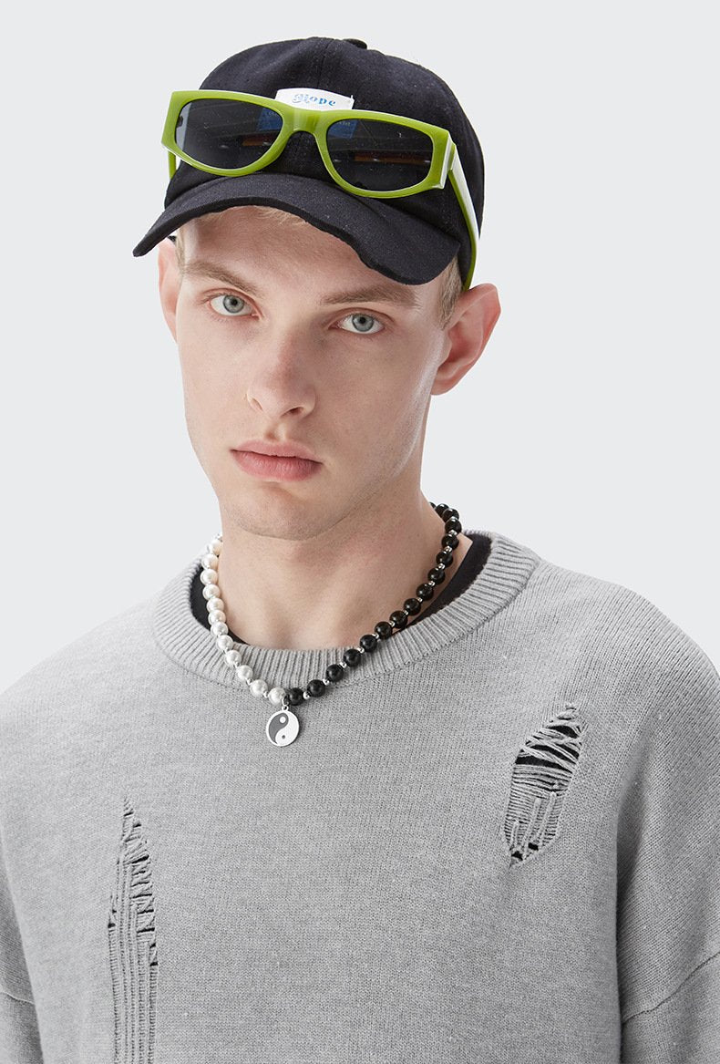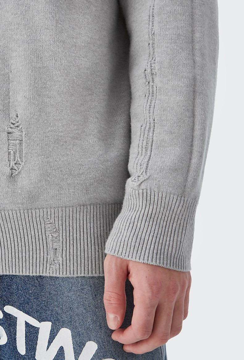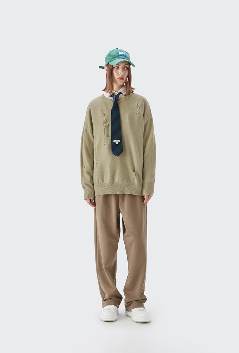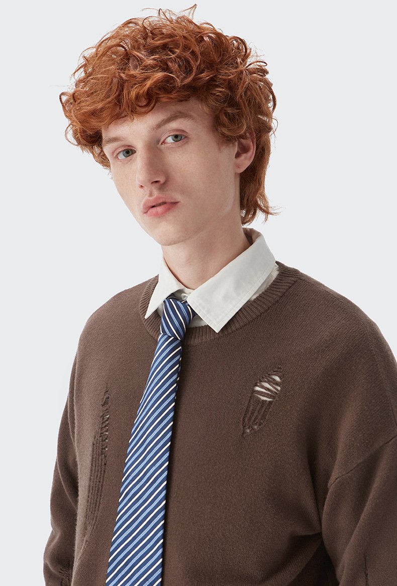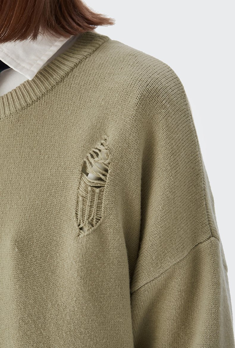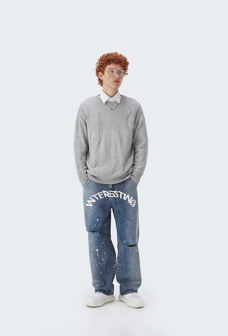 The Tattered Loose Sweater exudes a distressed. edgy look with its relaxed fit and worn-in texture. Perfect for adding a rugged. laid-back vibe to your casual outfits.
