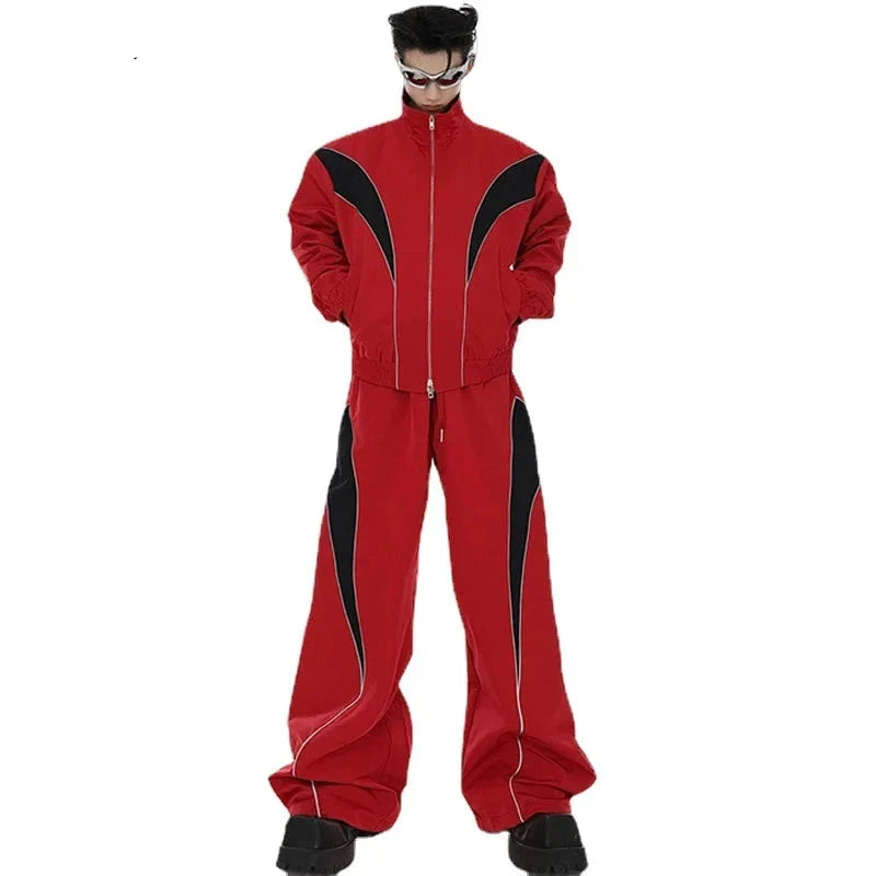 The Outlaw Splicing Color Jacket is made of high-quality polyester material and features a stylish turned-down collar for a modern and trendy look.