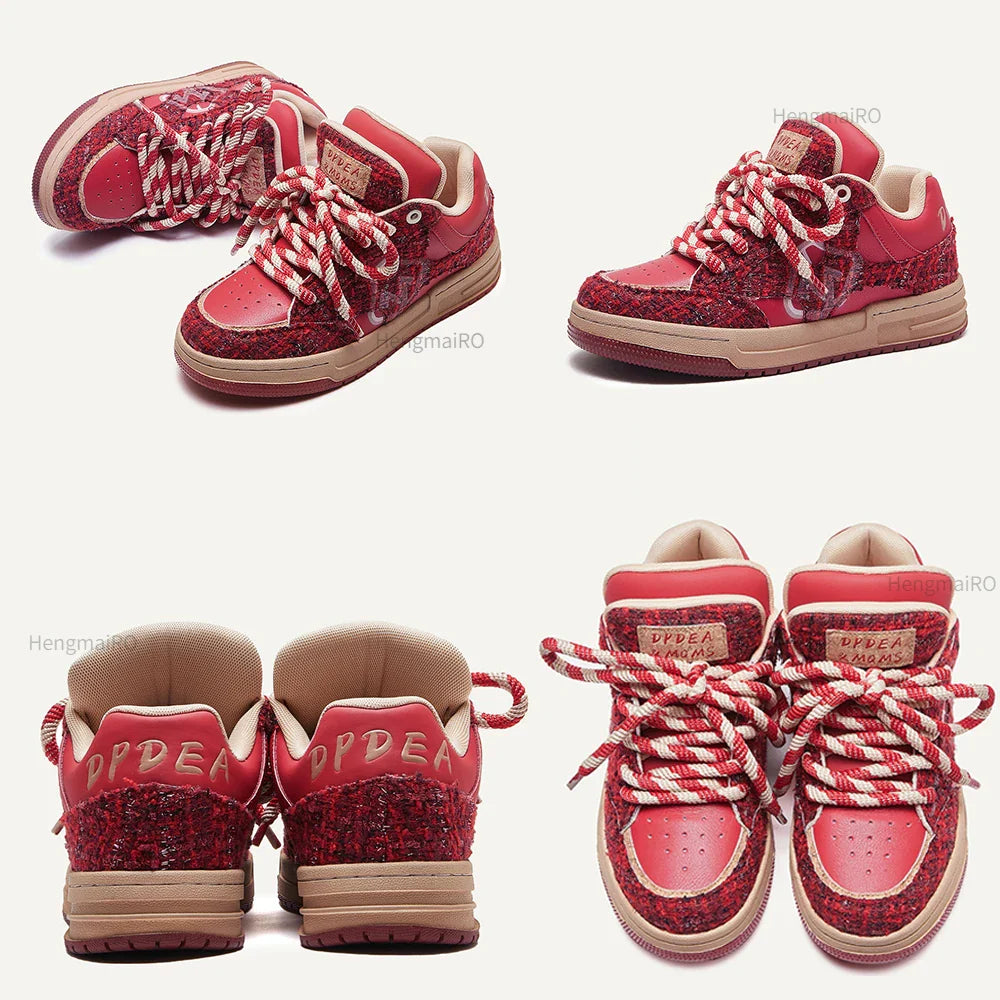 Introducing the Tweed Street Classic Sneakers. designed with a mixed color pattern. These lace-up skateboard shoes combine classic tweed style with contemporary streetwear appeal. perfect for any skate session.