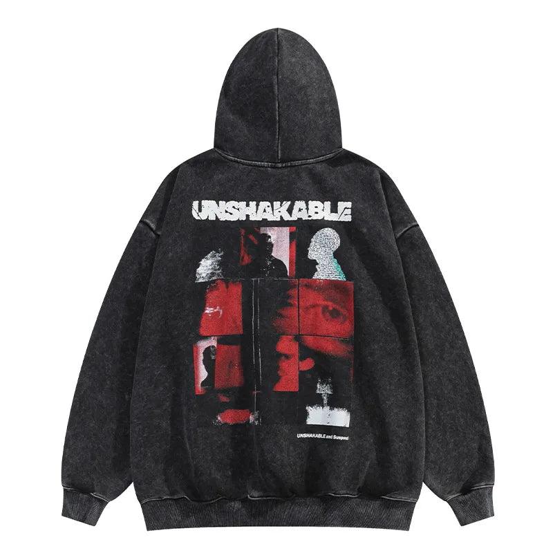 Unleash your style with our UNSHAKABLE Gothic Style Graphic Hoodie. Cotton-polyester blend. regular length. and hooded collar.