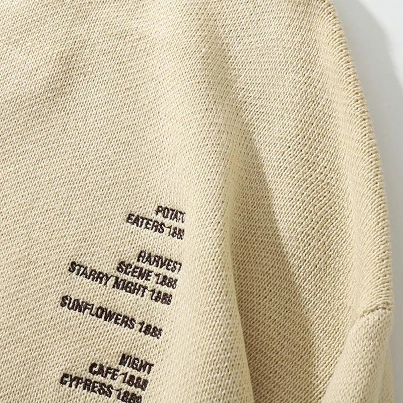 This sweater is made of a mix of cotton and wool materials. providing a comfortable and standard thickness. It features an elegant embroidered decoration and an O-neck collar. The sleeves are designed in a regular style. with a patchwork pattern. and made using flat knitting techniques.