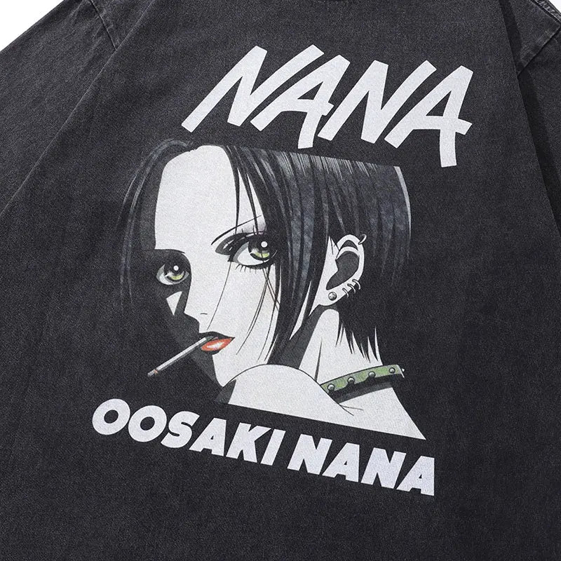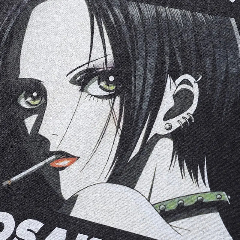 The Vintage Black Oosaki Nana Graphic T-Shirt brings iconic anime style to your wardrobe. featuring bold artwork of Oosaki Nana that adds a nostalgic. edgy vibe to any casual look.