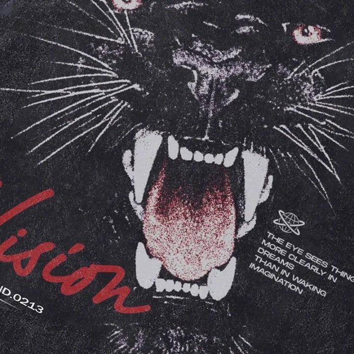 ï»?/strong>Infuse vintage street style with our Vintage Black Predatory Tiger T-Shirt. Crafted from comfy cotton broadcloth with an O-Neck collar and fierce print. perfect for Y2K vibes.