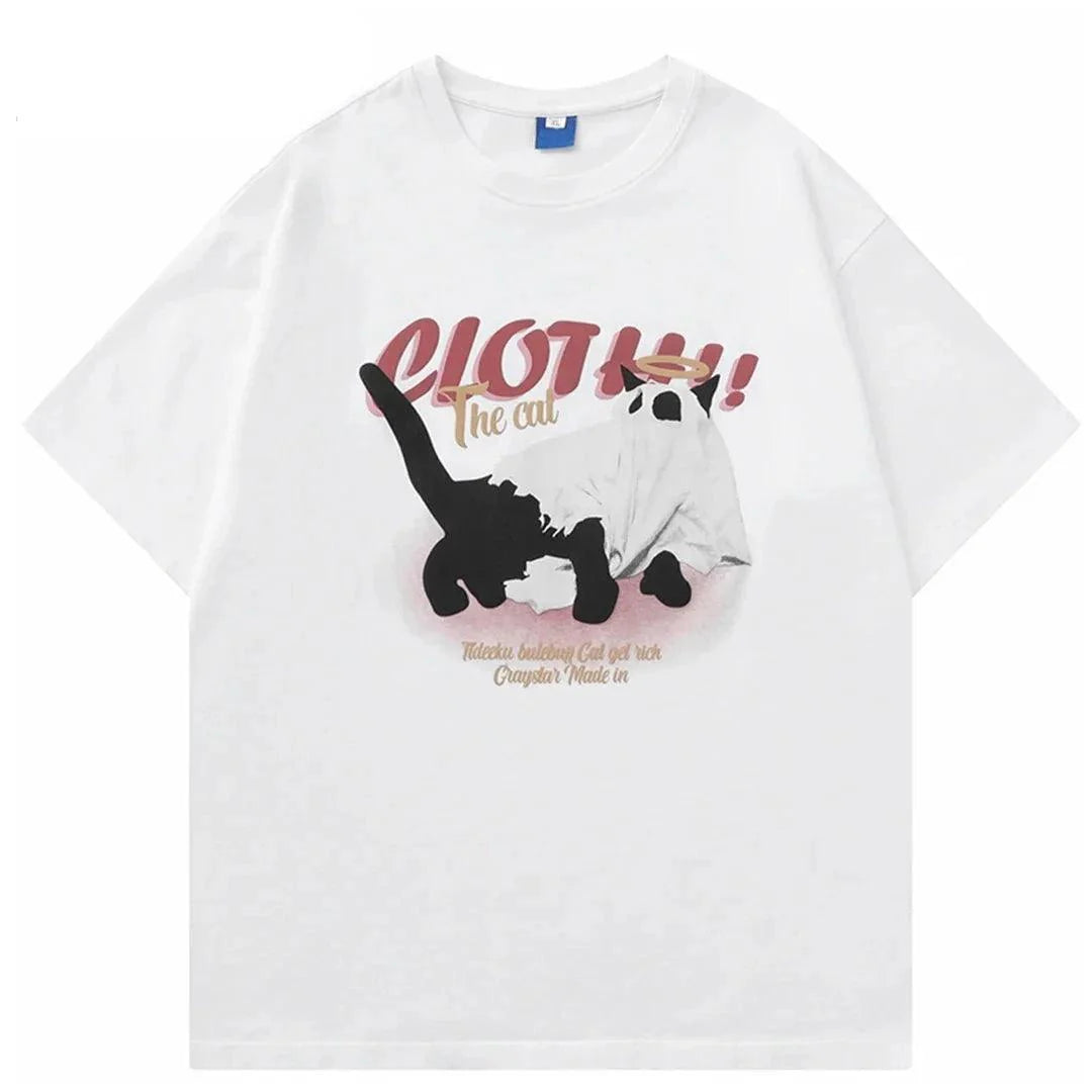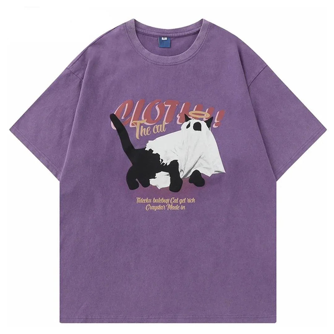 Elevate your casual wardrobe with our Vintage Cat Graphic Washed T-Shirt. Made of soft cotton jersey. O-Neck collar. and unique print design.
