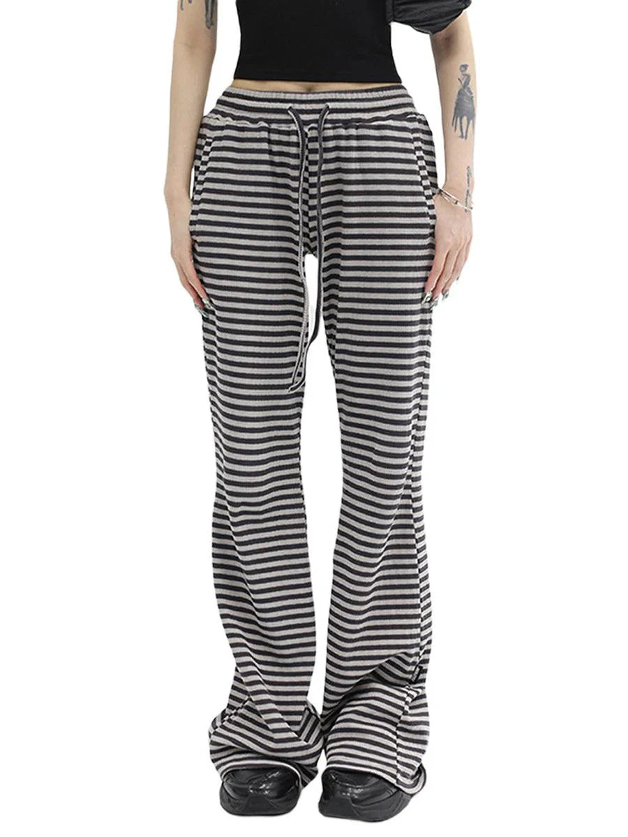 Elevate your casual wardrobe with Vonvex's Vintage Drawstring Straight Leg Pant. Featuring a low waist and adorned with decorative fake zippers. lace-up details. and rivets. these pants exude retro charm. Crafted from polyester with a knitted fabric type and adorned with a striped pattern. they offer both style and comfort. Complete with a button fly closure. these pants are a versatile addition to any fashion-forward ensemble. seamlessly blending vintage aesthetics with contemporary flair.